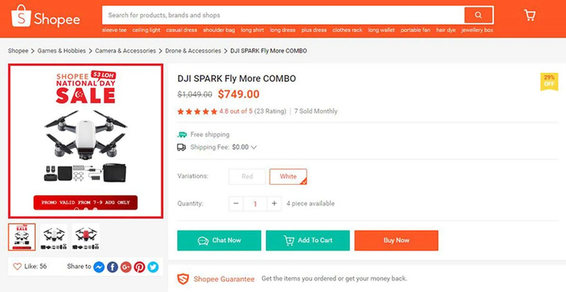 It may be the smallest drone from DJI's stable, but the DJI Spark is still a highly capable option. It has enough power to maintain steady flight in winds up to 50kmph in sport mode, comes with in-built obstacle avoidance systems, and features a gesture mode that lets you take selfies without needing a controller. This is going for S$749 instead of the usual price of S$1,049 on Shopee. Pick it up during 7th-9th August though, and you'll get an extra S$53 off as part of their national day celebrations promotion! Head here to watch our video on the Spark, and jump over here to pick it out now!