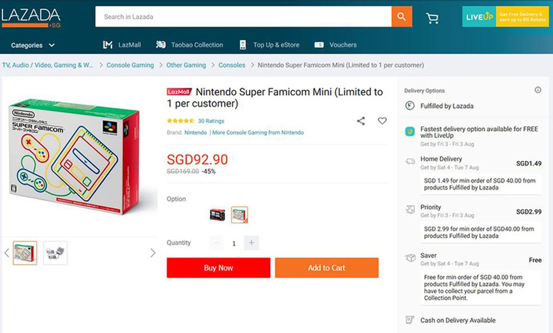 A throwback to the 90s, the Super Famicom mini you see here is a compact recreation of the original Super Famicom. It comes with two controllers and a collection of 21 classic games from the era so you can have fun re-living your childhood. This is going for just S$92.90 on Lazada, a good 45% off the usual price of S$169.00! Delivery is only from 10th October, and the system is completely in Japanese, but that shouldn't keep you from getting into your favorite games. Go book yours here now!