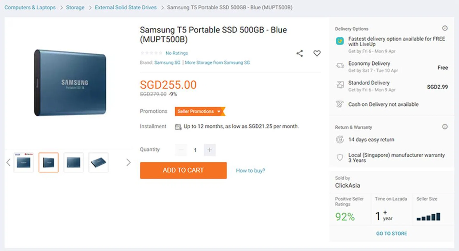 The Samsung T5 SSD 500GB is available to buy on Lazada now at S$255 (U.P. S$279). You can check out how it performs against other portable SSDs here.