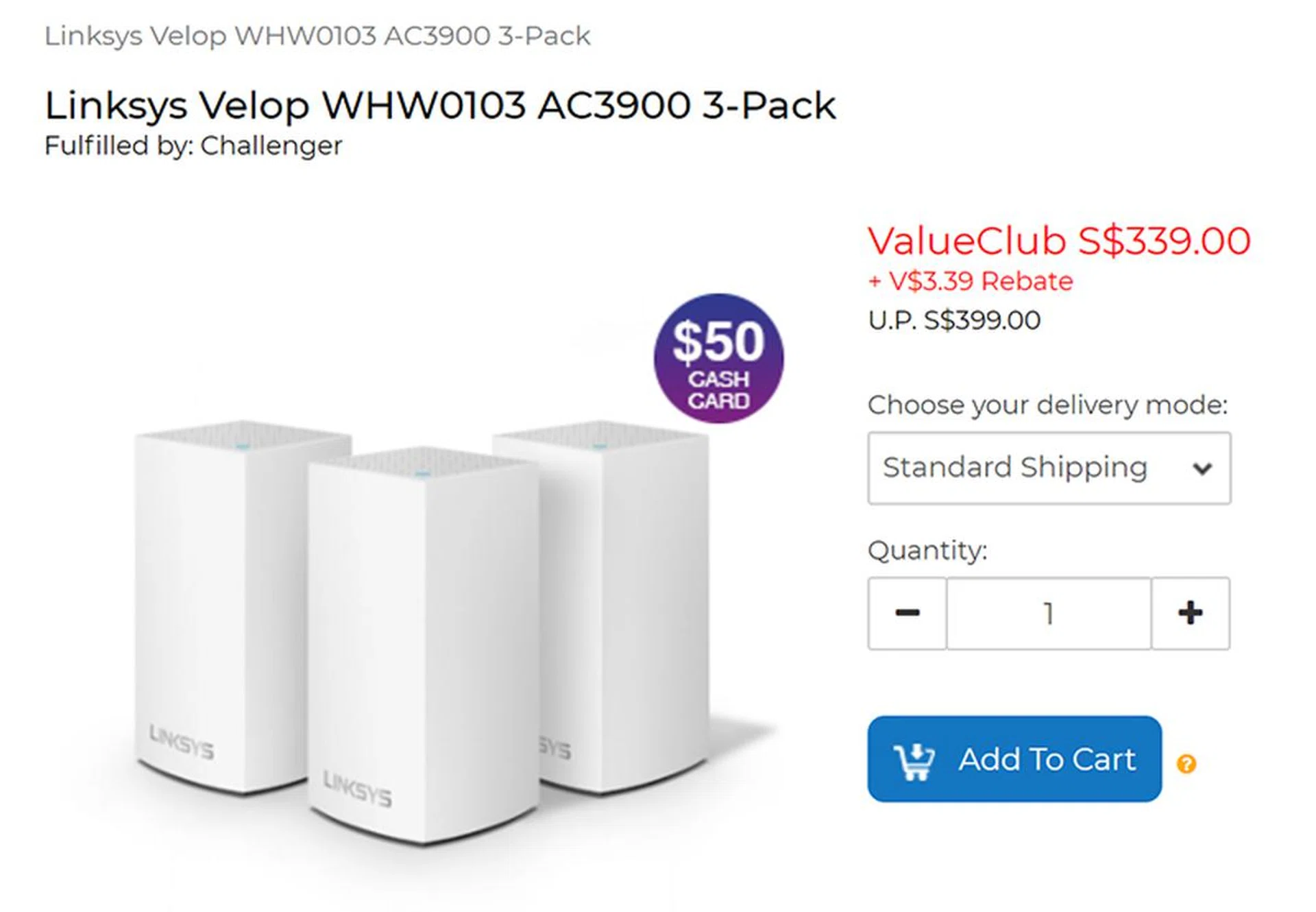 It is available on Hachi.tech for S$339, down from a usual price of S$399. You'll also be eligible to redeem a S$50 cash card from Linksys.
