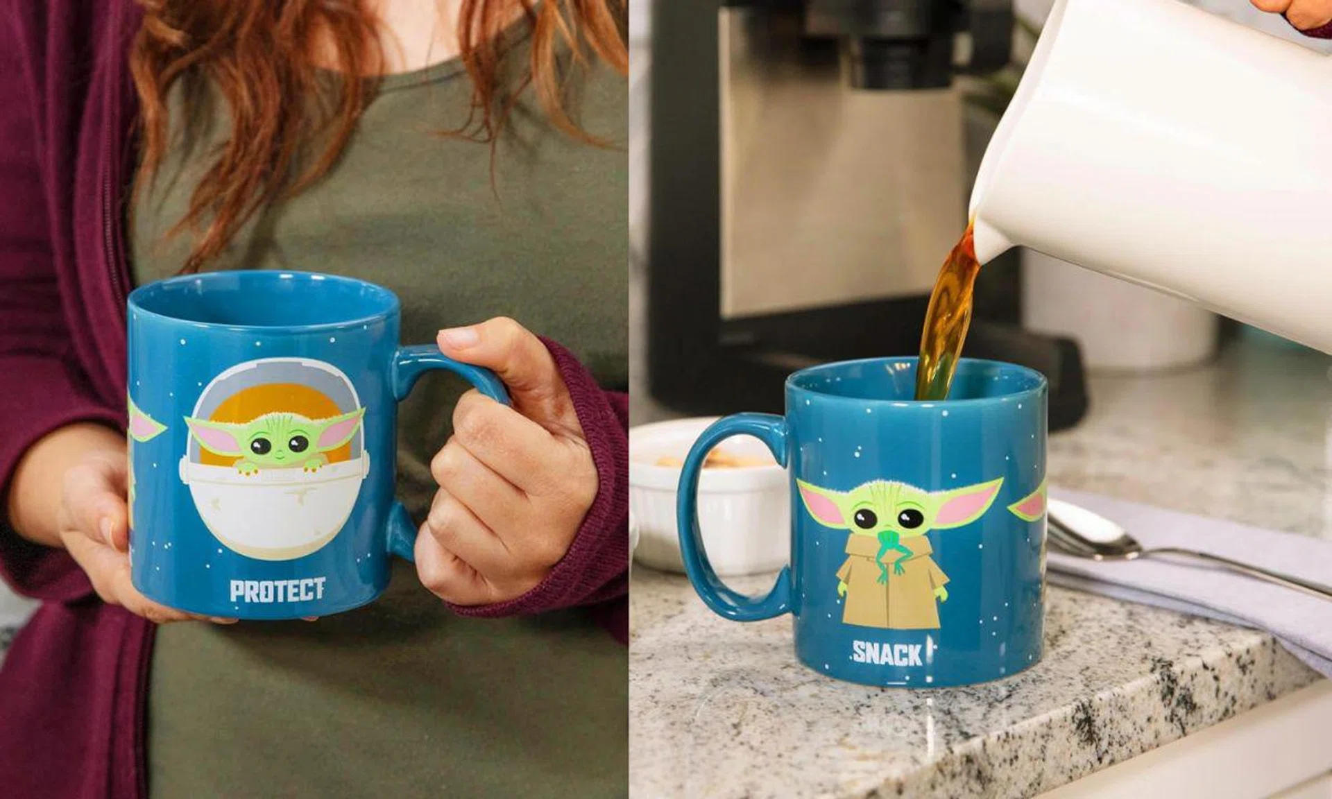 Great as a stocking stuffer or Christmas snatch game with friends, this cute mug features baby Yoga with the words ‘Snack’, ‘Attack’ and ‘Protect’.