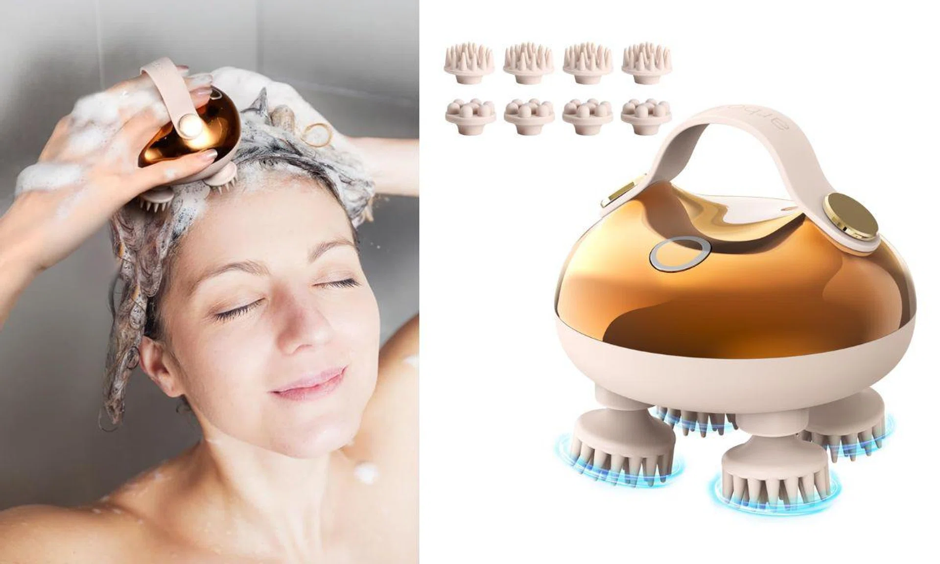 This portable scalp massager has eight tangle-free silicone claws and 128 nodes that simulate the kneading of human fingers, promoting hair growth, easing stress, and soothing tension.
