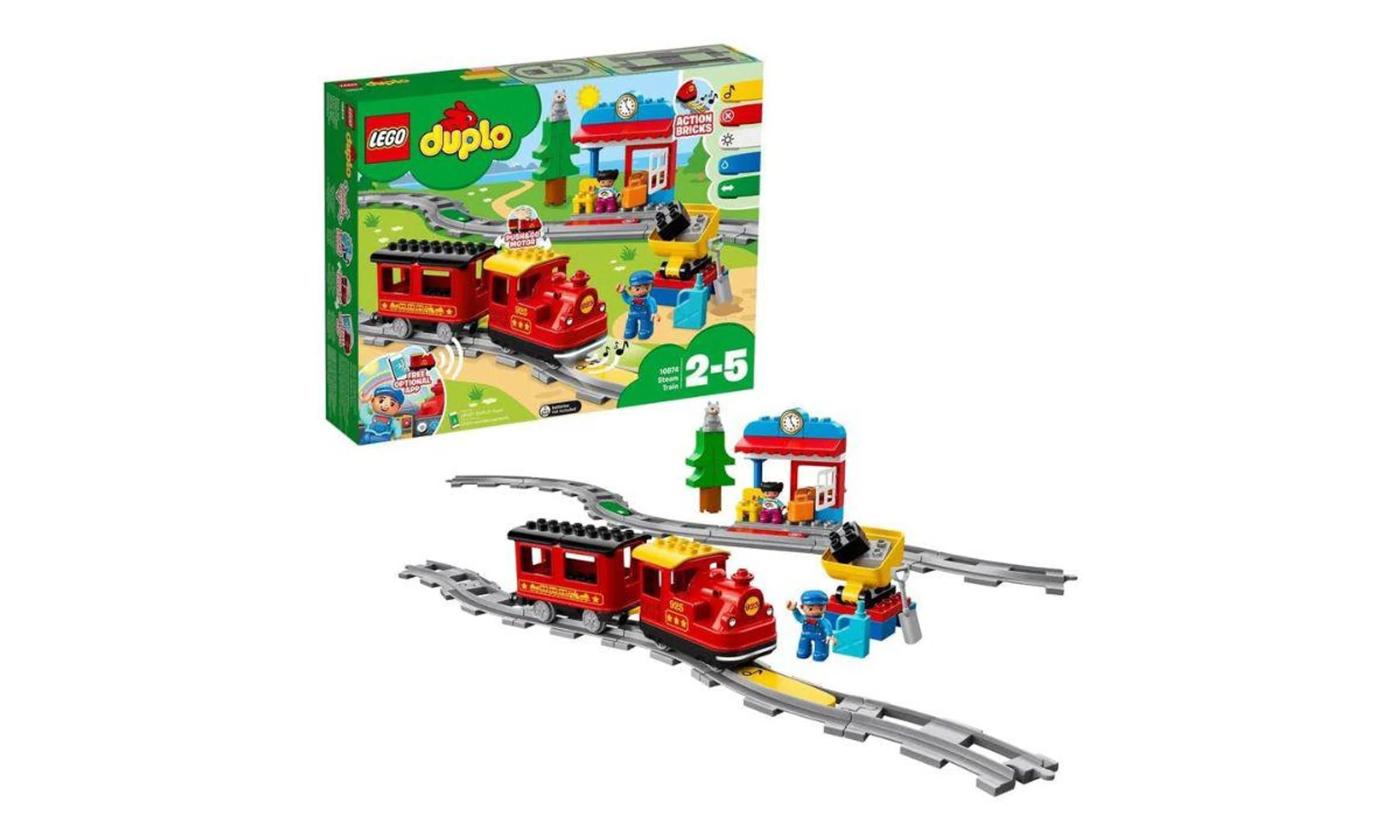 Introduce your toddler to the joys of the Duplo Steam Train. Featuring easy push-and-go control and other fun interactive actions like honking the horn, turning on lights and refuelling, this delightful set will spark role-playing skills and imaginative play. Compatible with other Lego Duplo train collections. Suitable for ages 2 to 5.