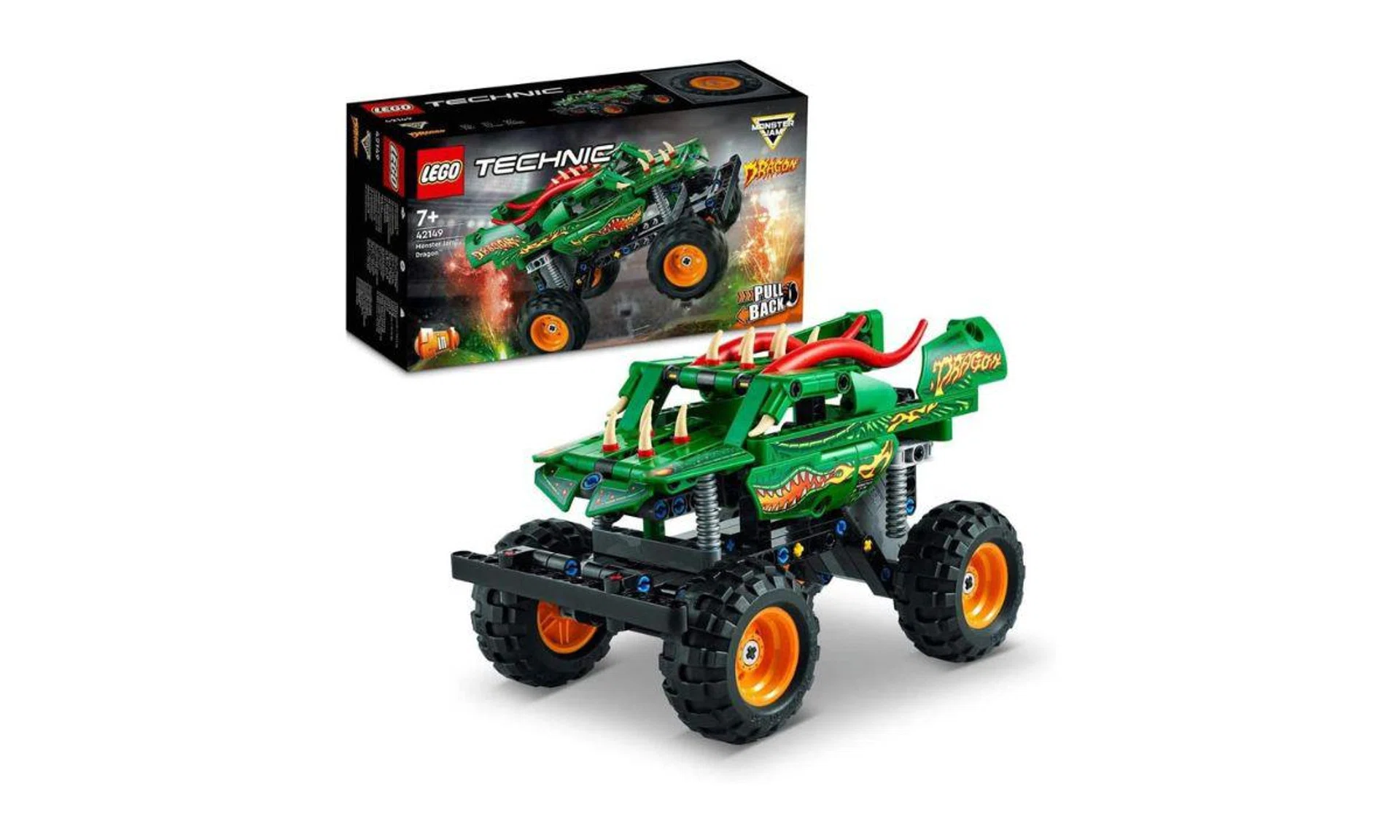 Delight little Monster Jam fans with the 2-in-1 pull-back truck toy, showcasing authentic graphics and dragon elements. Children can transform it into a Crocodile Monster Truck for extra excitement. Suitable for kids aged 7 and up.