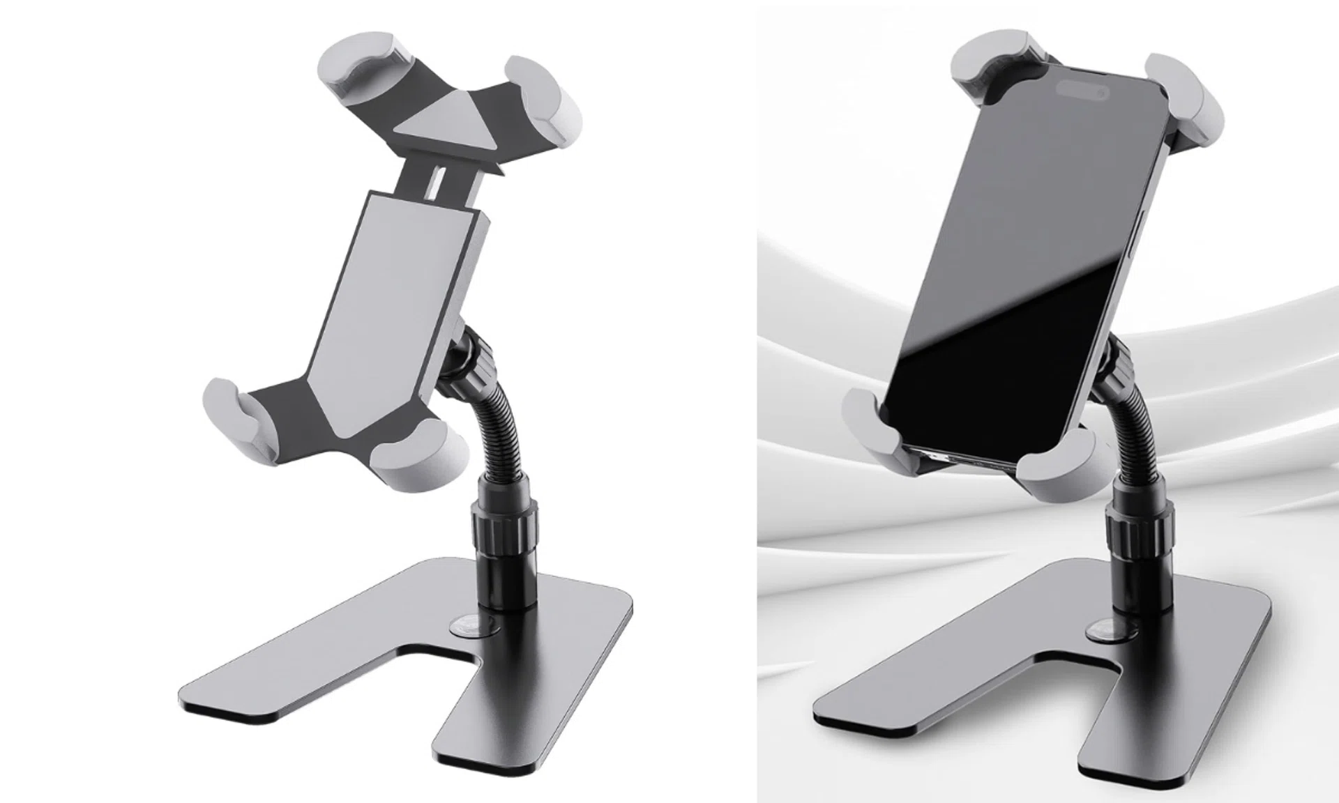 Suitable for smartphones and tablets, this stand has a heavy metal base to ensure stability and also has rubber pads at the bottom so you don't have to worry about knocking your devices off. Easy to use and affordable, this stand offers flexible positioning and you can adjust the stand to suit your preference while working.