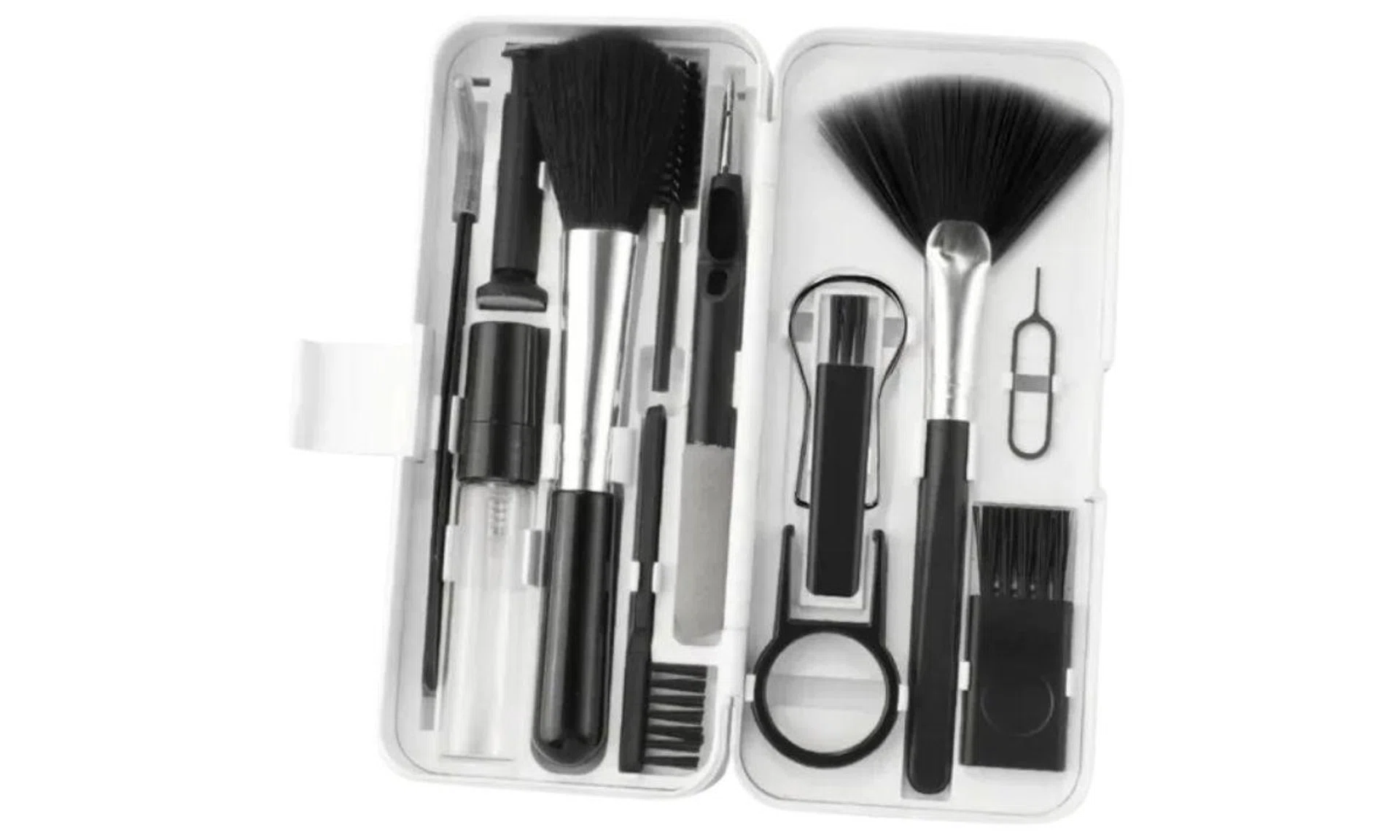 No more gunky gadgets! This all-in-one kit contains everything needed - from brushes to keycap puller and even a phone stand - to keep keyboards, earbuds and screens clean.