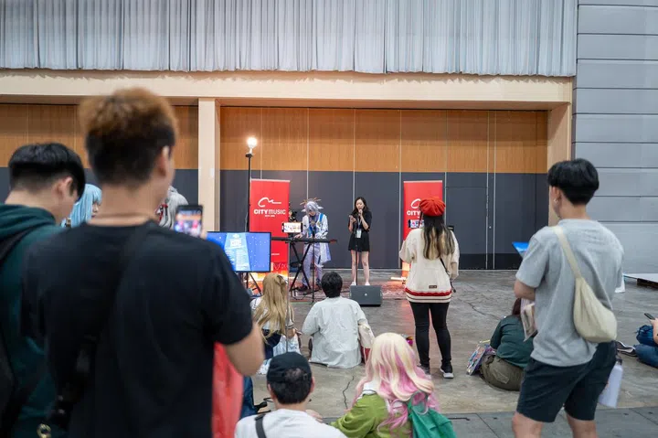 There's also a space for live music performances at AFA CSF, with singers (some in cosplay mode) performing anime hit songs.