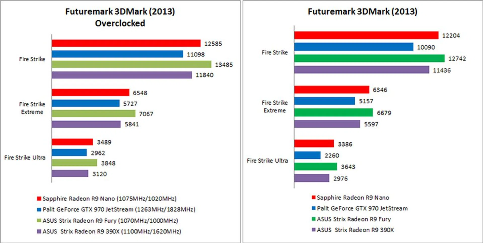 Sapphire Radeon R9 Nano | Palit GeForce GTX 970 JetStream | ASUS Strix Radeon R9 Fury | ASUS Strix Radeon R9 390X | |
