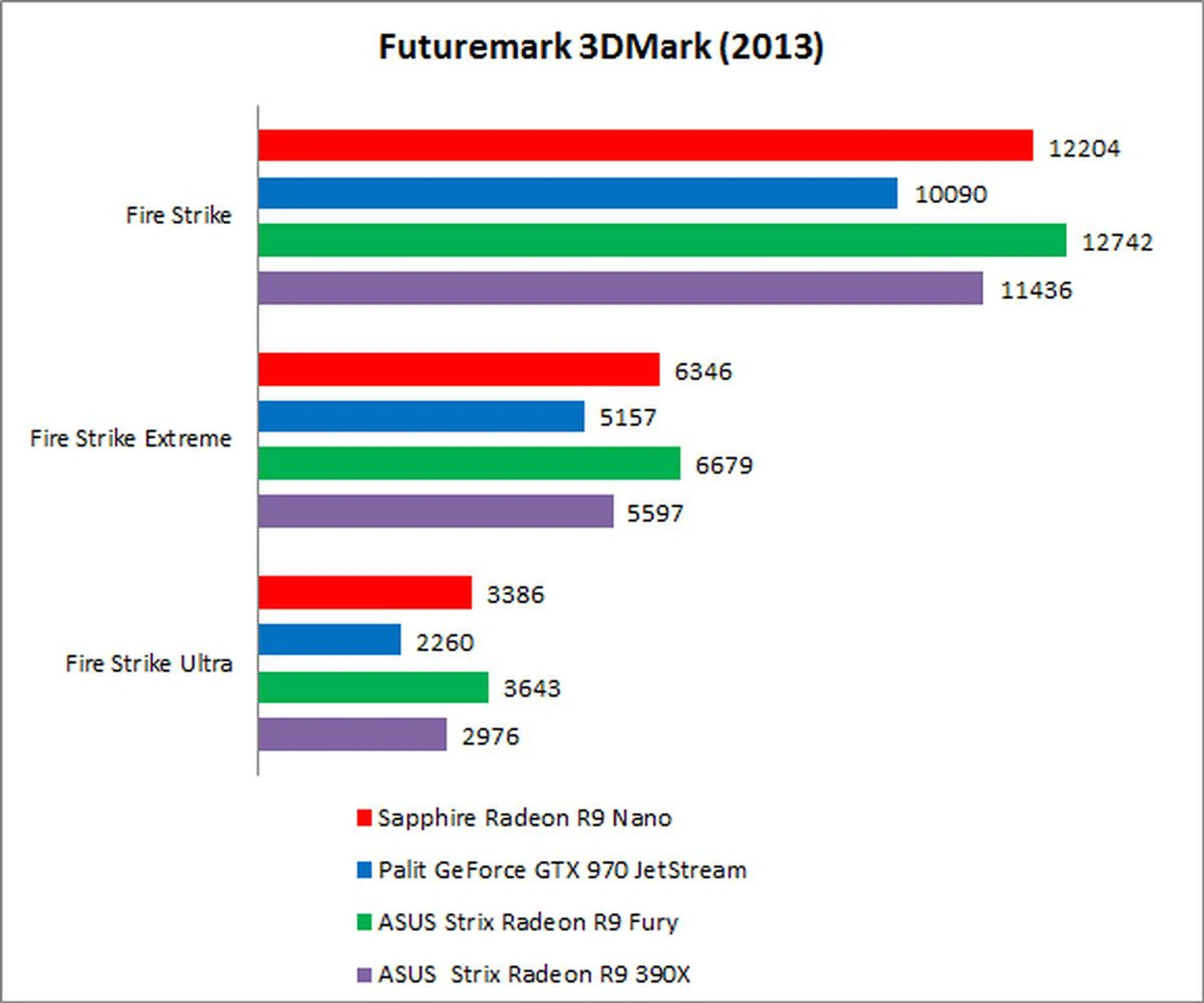 The AMD Radeon R9 Nano holds quite a large advantage over the NVIDIA GeForce GTX 970. (Image Source: Sapphire)