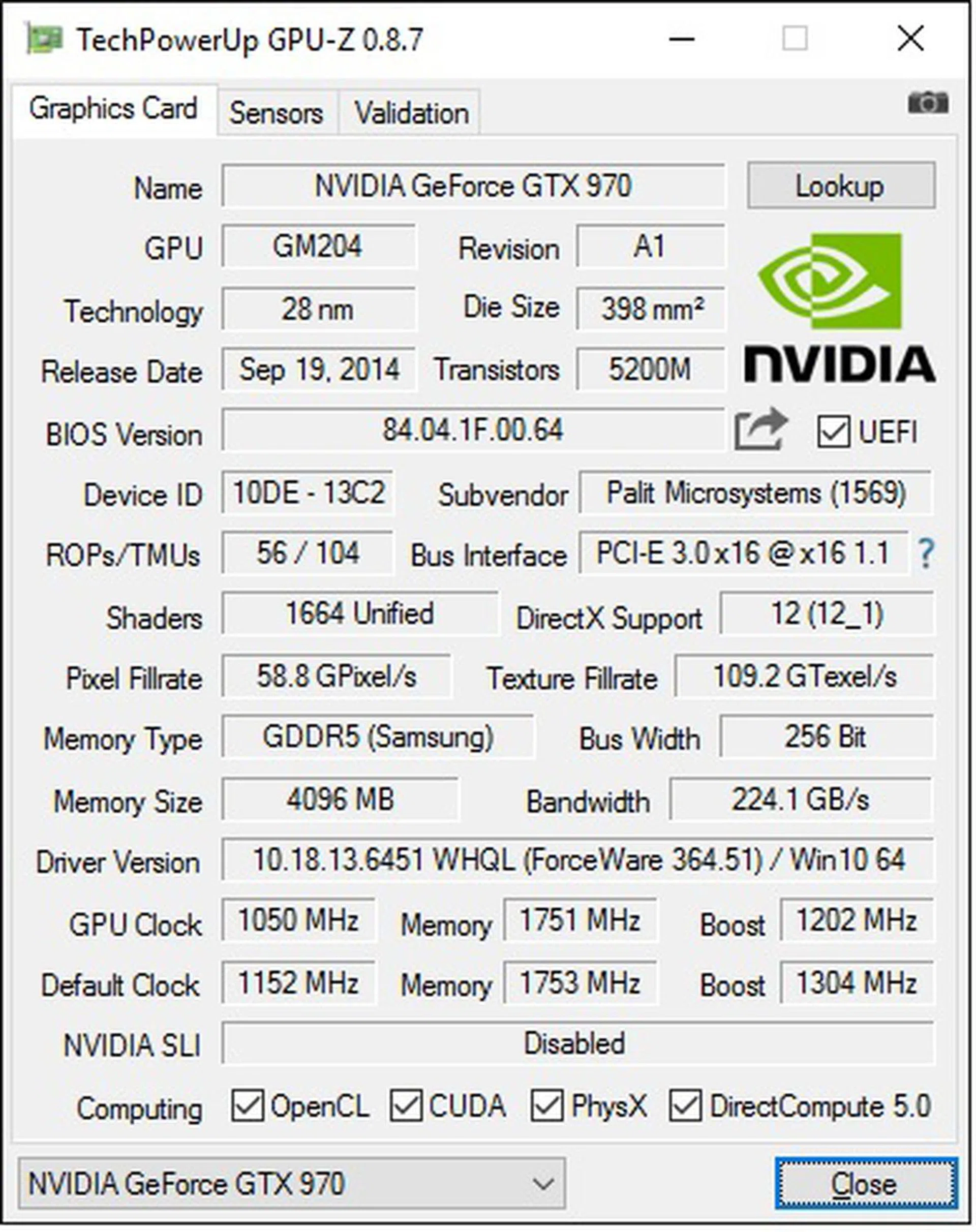 - Palit GeForce GTX 970 JetStream (ForceWare 364.51)