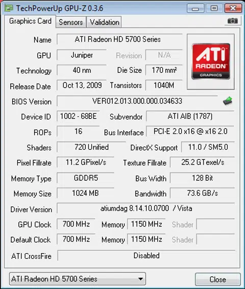 - ATI Radeon HD 5770 1GB GDDR5 (Beta 8.66 RC9)