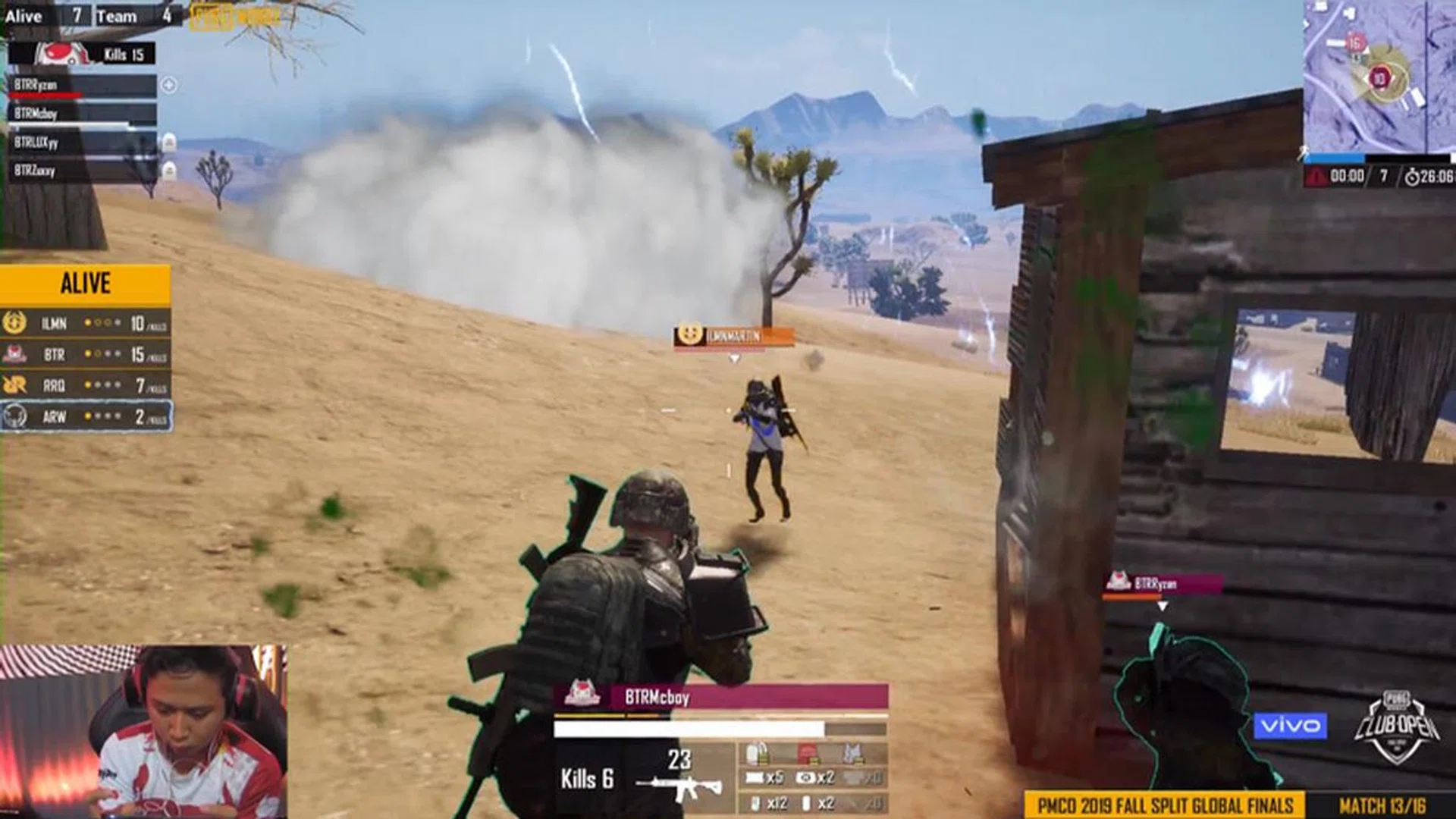 Match 13 went to the deserts of Miramar. It seems like playing on their home turf wasn’t enough of an advantage for Malaysian team Yoodo Gank, as they were the first team to get eliminated here. In a massive upset, Bigetron didn’t even make it to the top three this time - Illuminate, RRQ and All Rejection Gaming took those spots instead. Due to All Rejection Gaming getting stuck in the circle and RRQ getting shot down, Illuminate took the win.