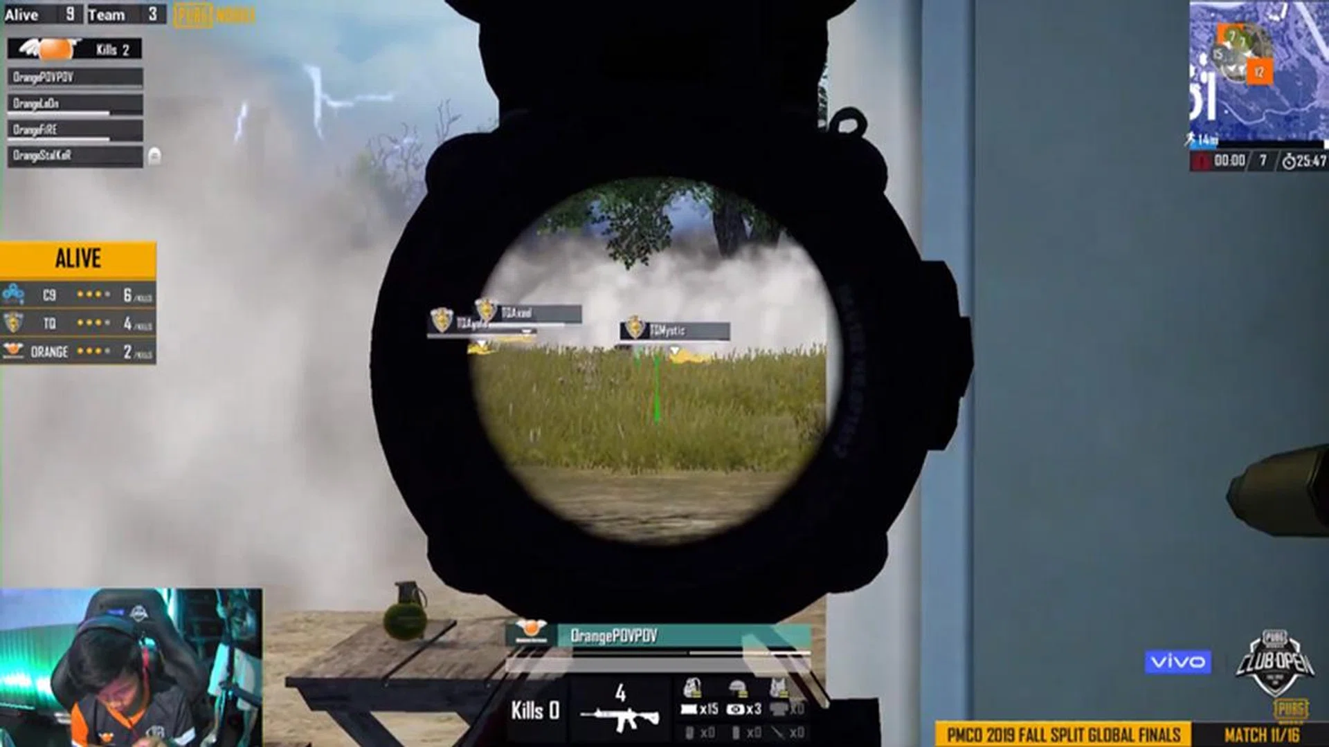 Match 11 took place in Erangel and at this point, Bigetron is ahead in the standings by a wide margin. They won three chicken dinners back-to-back yesterday - so expectations were understandably high. Unfortunately, they only got the ninth spot in this particular match, while Orange, Team Queso and Cloud 9 entered the top three. Orange won this one by sheer numbers alone, earning their very first chicken dinner of the entire tournament.