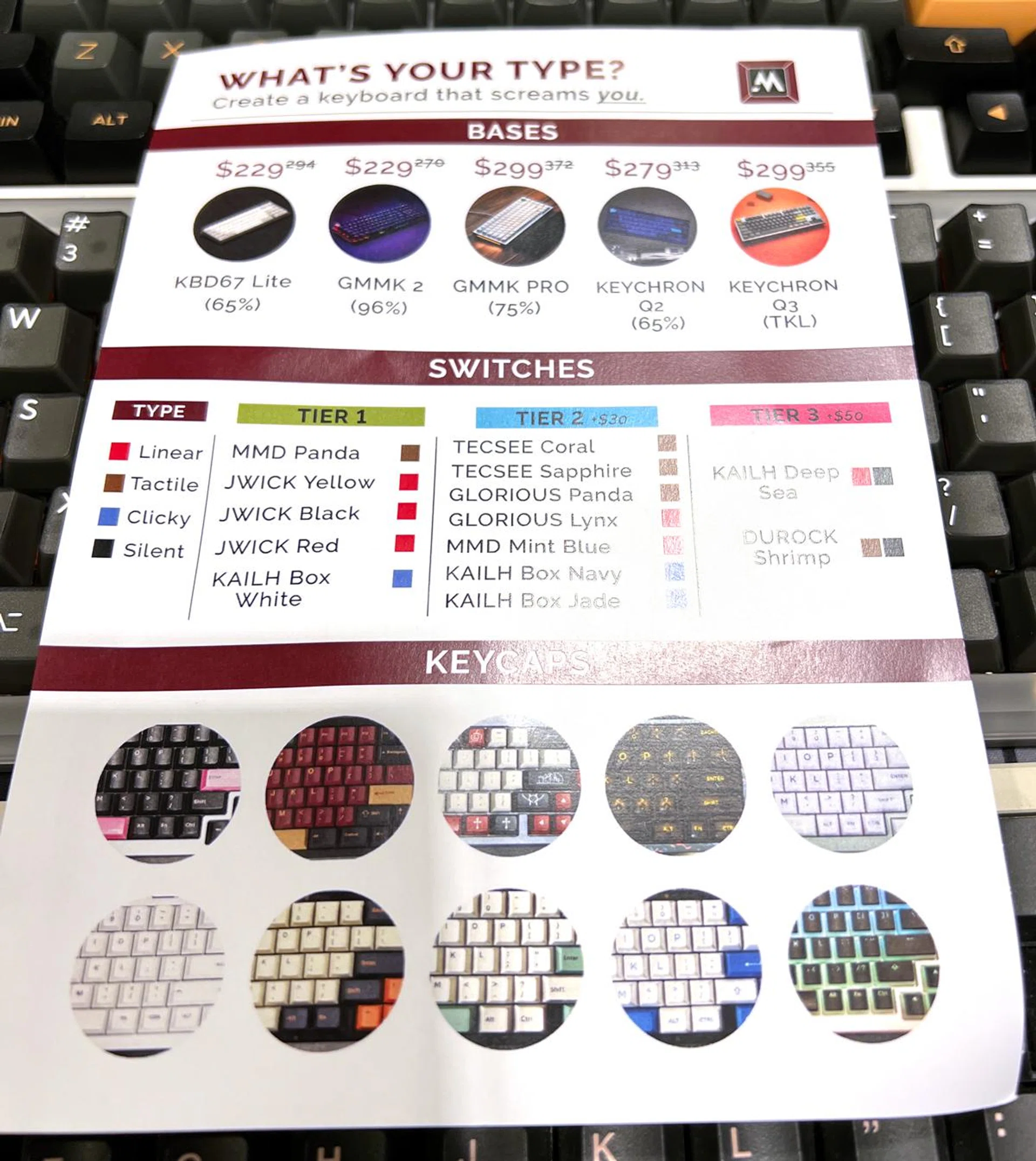 At Mash’s booth (Booth 8555), you can pick between four layouts (65%, 75%, 96%, TKL) across different brands for its bases. There are also eight types of switches to choose from, with 19 keycap designs to tickle your fancy.