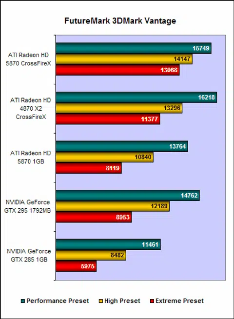 - ATI Radeon HD 4870 X2 in CrossFireX 2GB GDDR5 (Catalyst 9.8)