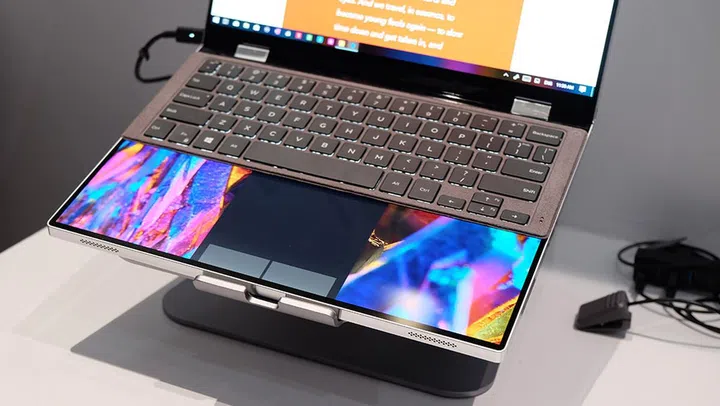 The dual-screen Concept Duet somewhat resembles an XPS 13 2-in-1, except a second display sits where the keyboard should be. It can be used in a variety of modes, and even mimic how you would read a regular book. Alternatively, you can read on one screen and take notes on the other.