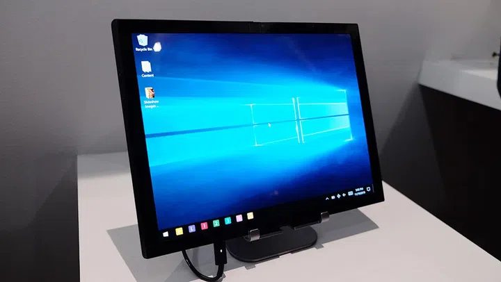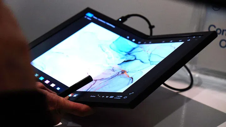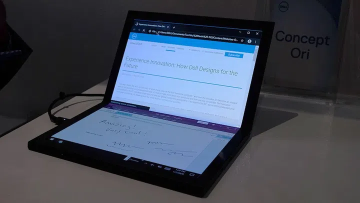This tablet-like device is Concept Ori, and it's actually so much more than a tablet. It features a flexible OLED screen, so it can be both a single- and dual-screen device and support a wider range of use cases.