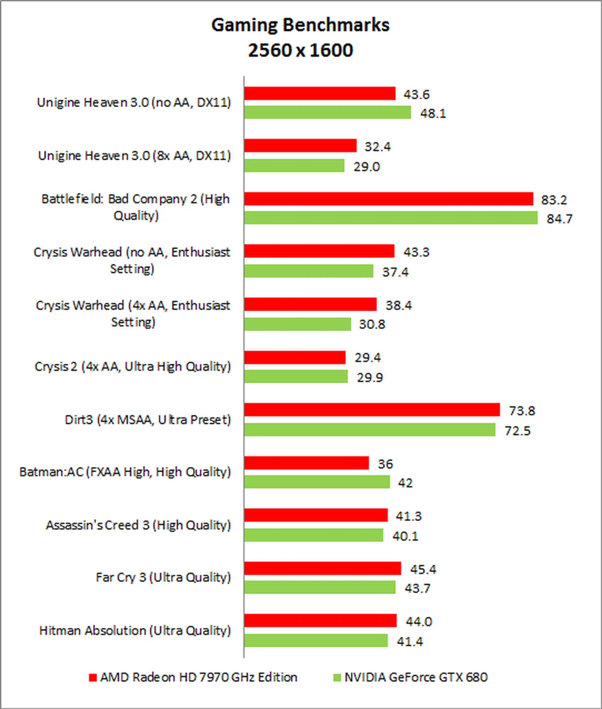Earlier in 2012, NVIDIA held a fairly considerable performance lead over AMD. However, the way things stand now, AMD has been able to catch up and, at present, both cards are almost exactly equal in terms of gaming performance (barring a few games optimized in favor of one over the other).