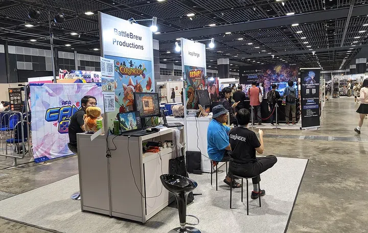 Some local indie games also got to make an appearance. Near the GameOn stage, four local game developers were exhibiting their wares: Battlebrew Productions' Cuisineer, a food-based dungeon crawler, kopiforge's SEDAP!, a co-op cooking adventure game, Gearbyte Games' Identifile, an action roguelike with visuals based on OS file directories, and Springloaded's Let's Build a Dungeon, a game dev simulator where you control a company developing an MMORPG.