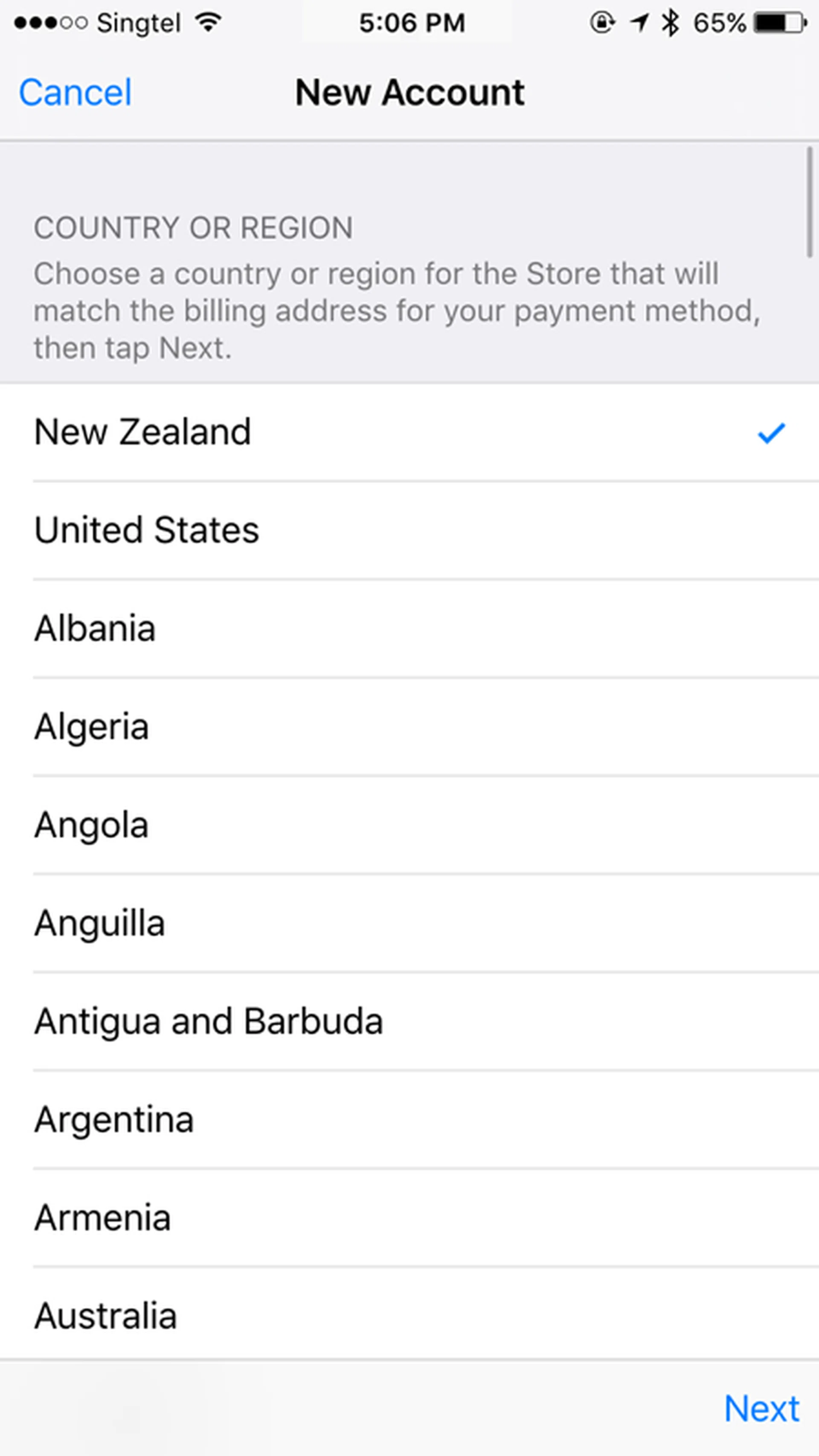 4. Create a new Apple ID and choose New Zealand as your region. Do note that you'll need to be able to verify your Apple ID to download the game, so make sure you have access to the email address you're using to set up this temporary account. Leave the billing information blank. When you get to the address details, use this website to generate a fake New Zealand address.