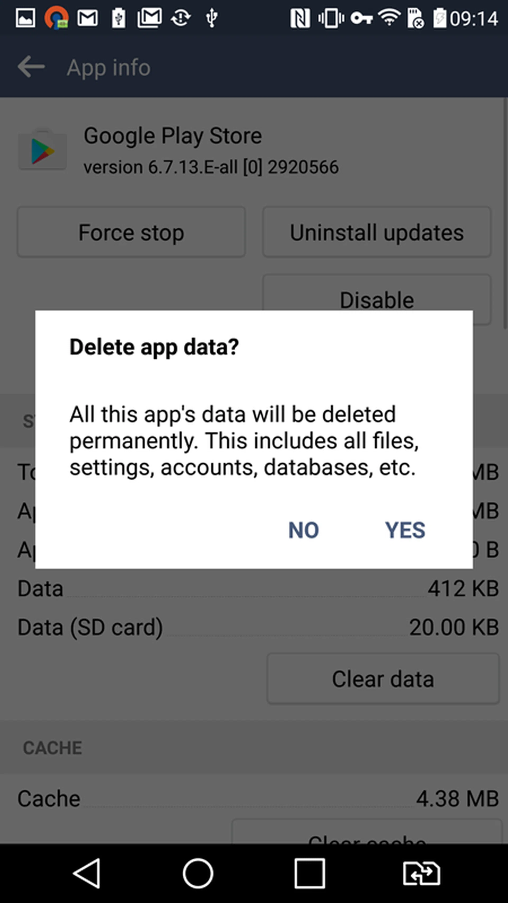 4. Next, clear both the cache and data of the Google Play Services app and Google Play Store app. Do this by going to Settings > Apps > Google Play Store > Clear Data. Don’t worry, clearing this data won’t affect any of your existing downloaded apps.