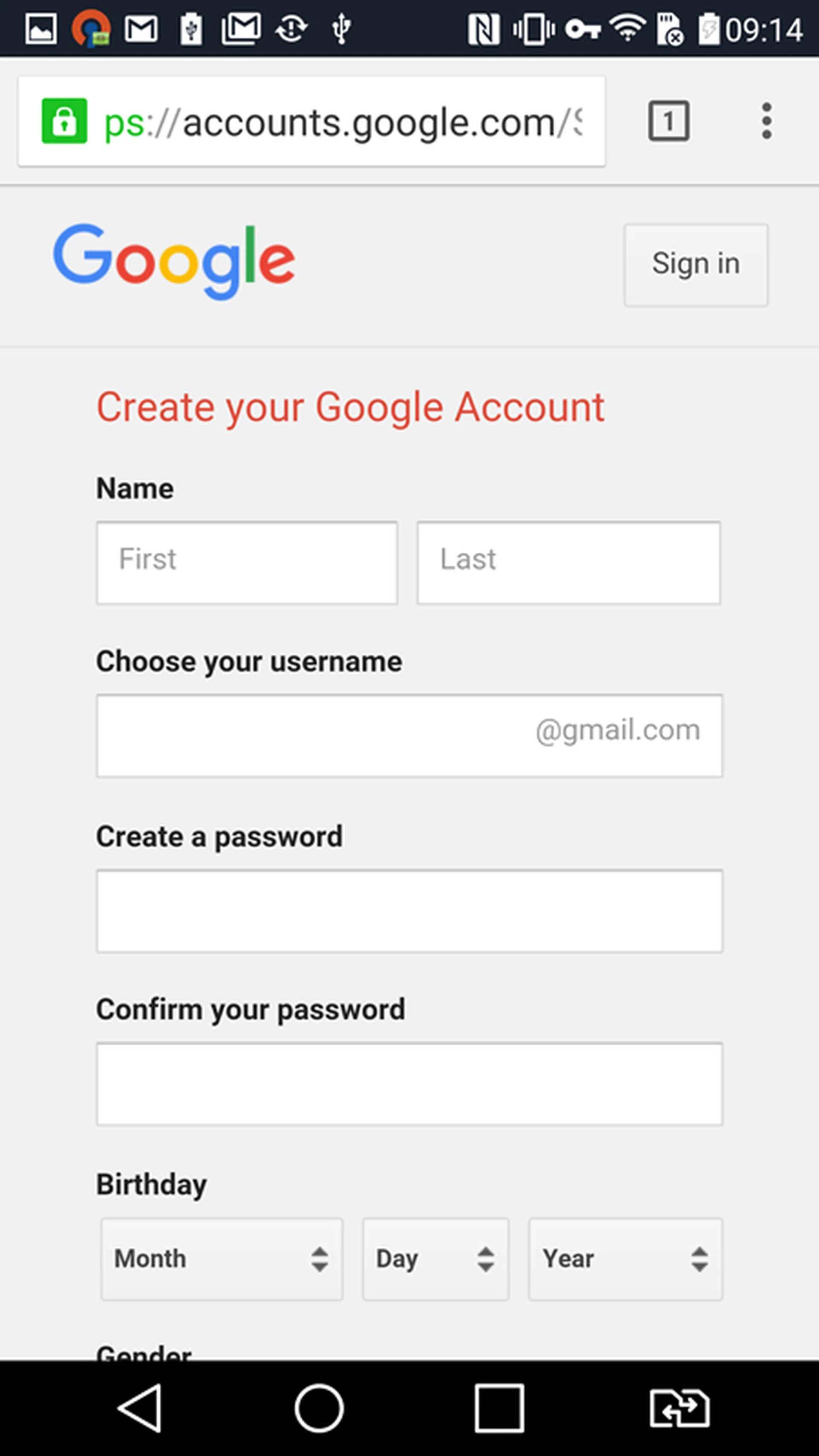 5. Now you need to make a completely new Google account. You’ll only be using this account to download Pokémon GO (or any other apps you want that are not available locally). Using your phone, go to Gmail and sign up for one, then open the Play Store app and login using your new account.