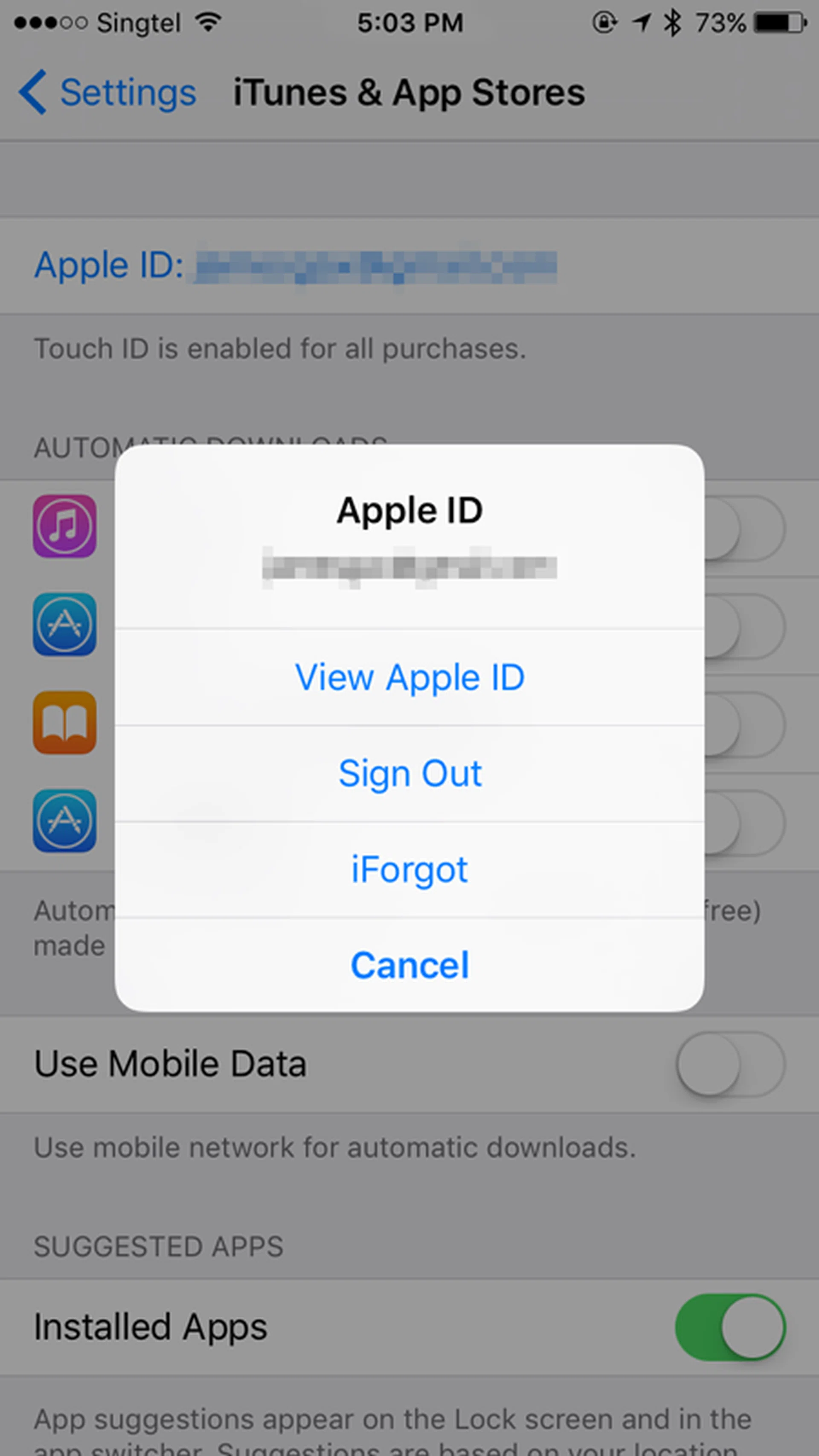 1. Go to Settings > iTunes & App Stores and sign out of your Apple account.