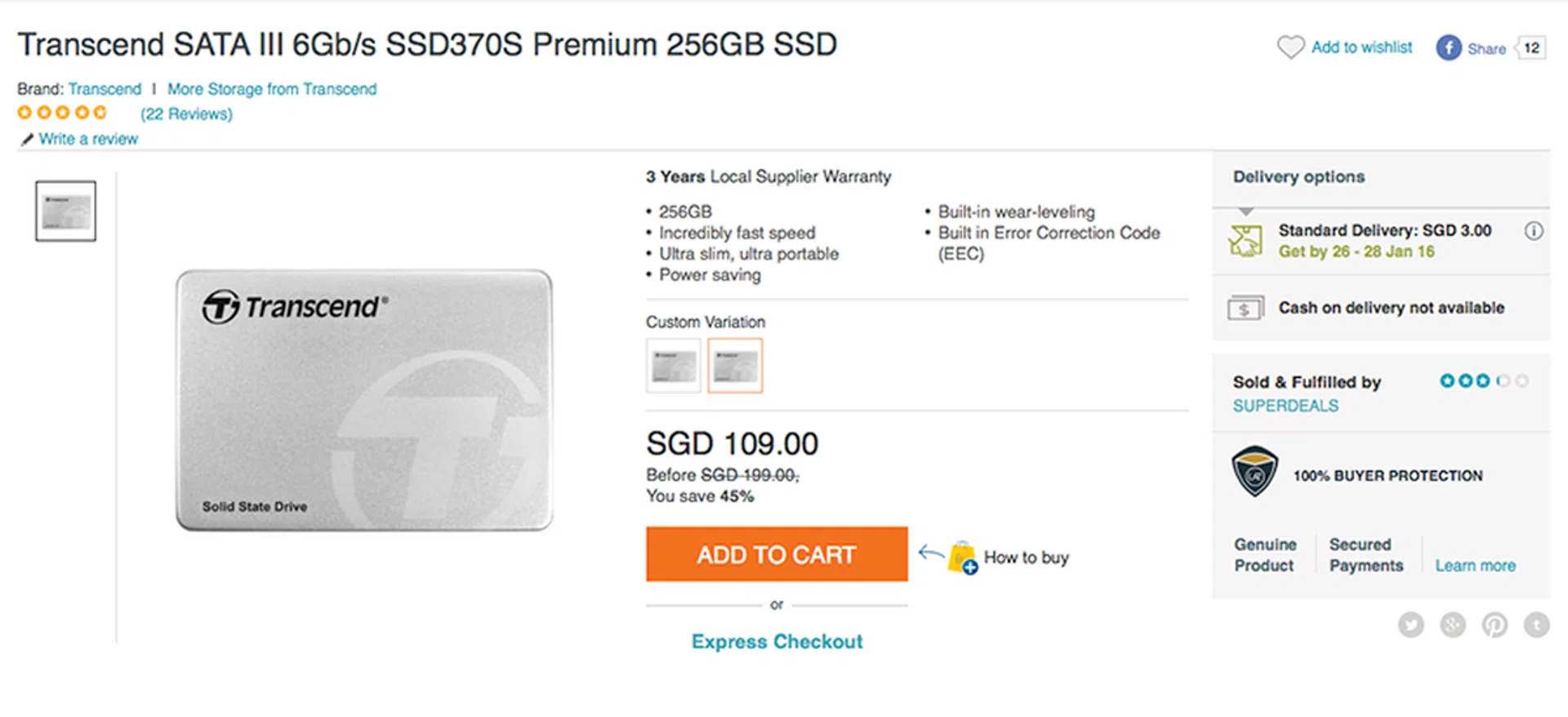 If you are still using a mechanical hard disk drive as your primary drive, you owe it to yourself to get an upgrade to an SSD. With SSD prices at all time lows, there’s really no reason to still be stuck with a slow spinning drive. Though the Transcend SSD370 is an entry-level drive with not so impressive write speeds, it’s still miles quicker than any hard disk drive. The good thing is that it is available now for just S$109 for the 256GB version on Lazada. That’s just 42 cents per gigabyte! What are you waiting for?