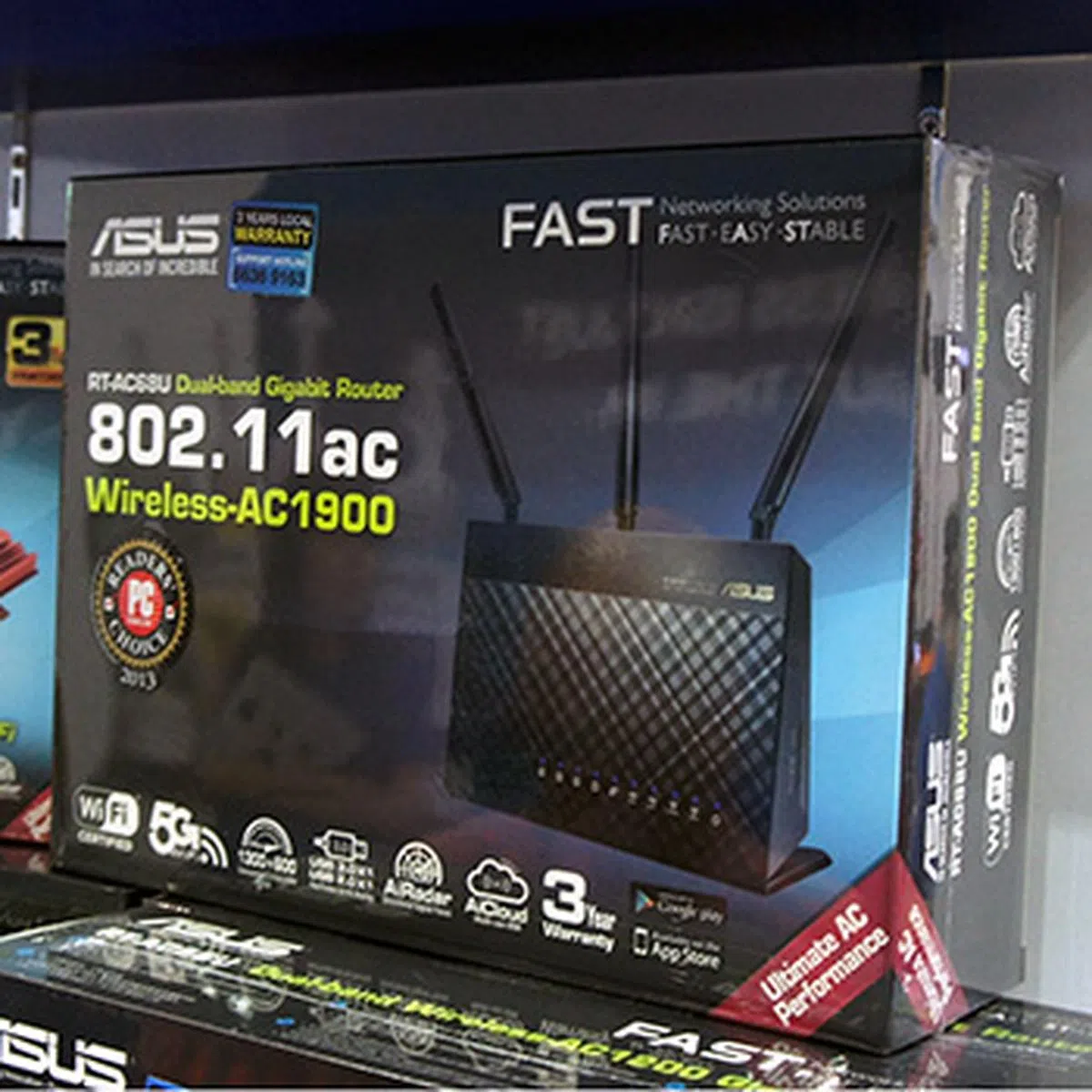 ASUSRT-AC68U The ASUSRT-AC68U is the latest flagship router from the Taiwanese hardware giants. And if you are looking for a speedy AC router to complement your high-speed fiber connection, the ASUSRT-AC68U is the router for you as it supports up to 1900 Mbps over its dual-band frequencies, making it ideal for HDmovie streaming.ITShow 2014 Offer