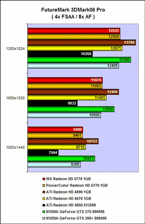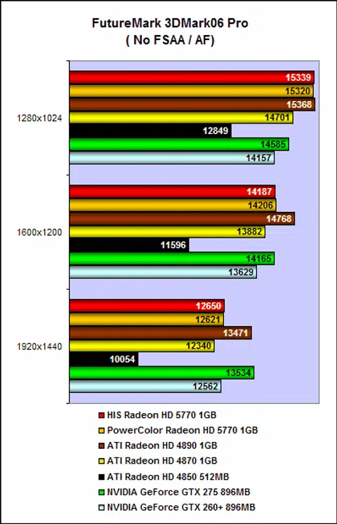 We begin our analysis of the Radeon HD 5770 on 3DMark06, an old but still widely used benchmarking software.