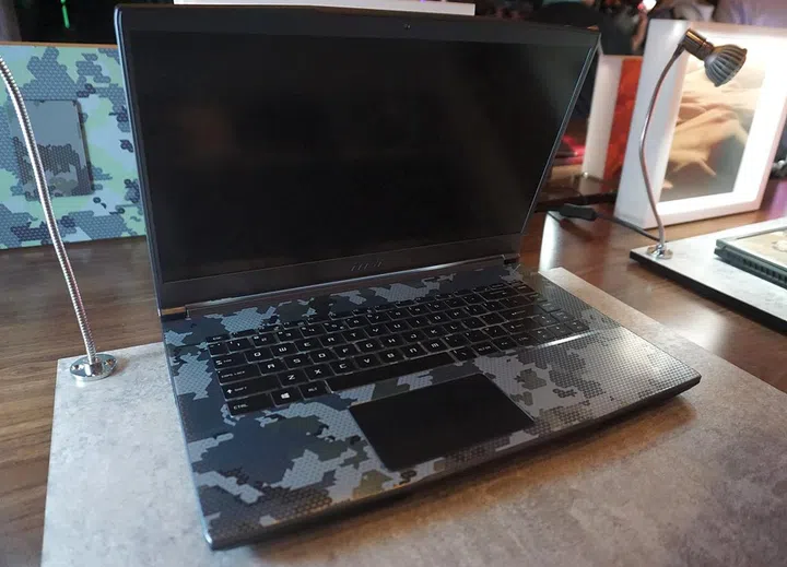 MSI is certainly pulling all the stops for their 2020 hardware lineup, software innovation and even on the design front. At CES, MSI showcased some very interesting colour choices for some of their highlight notebook models that would appeal to the younger, flashier generation (and those young at heart). Not all the colours options seen in this article will be offered in all countries and exact availability details will only be detailed later in the year. Seen here are dual Camo colour prints for the MSI GF65 series.