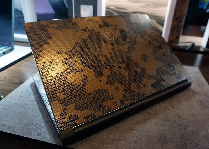 Inspired by the modern combat uniform that the US army uses for their dessert based operations, the MSI GF65 Camo edition comprised of 4 shades of brown in triangular lines with a metal mesh feel when you run your fingers over the cover.