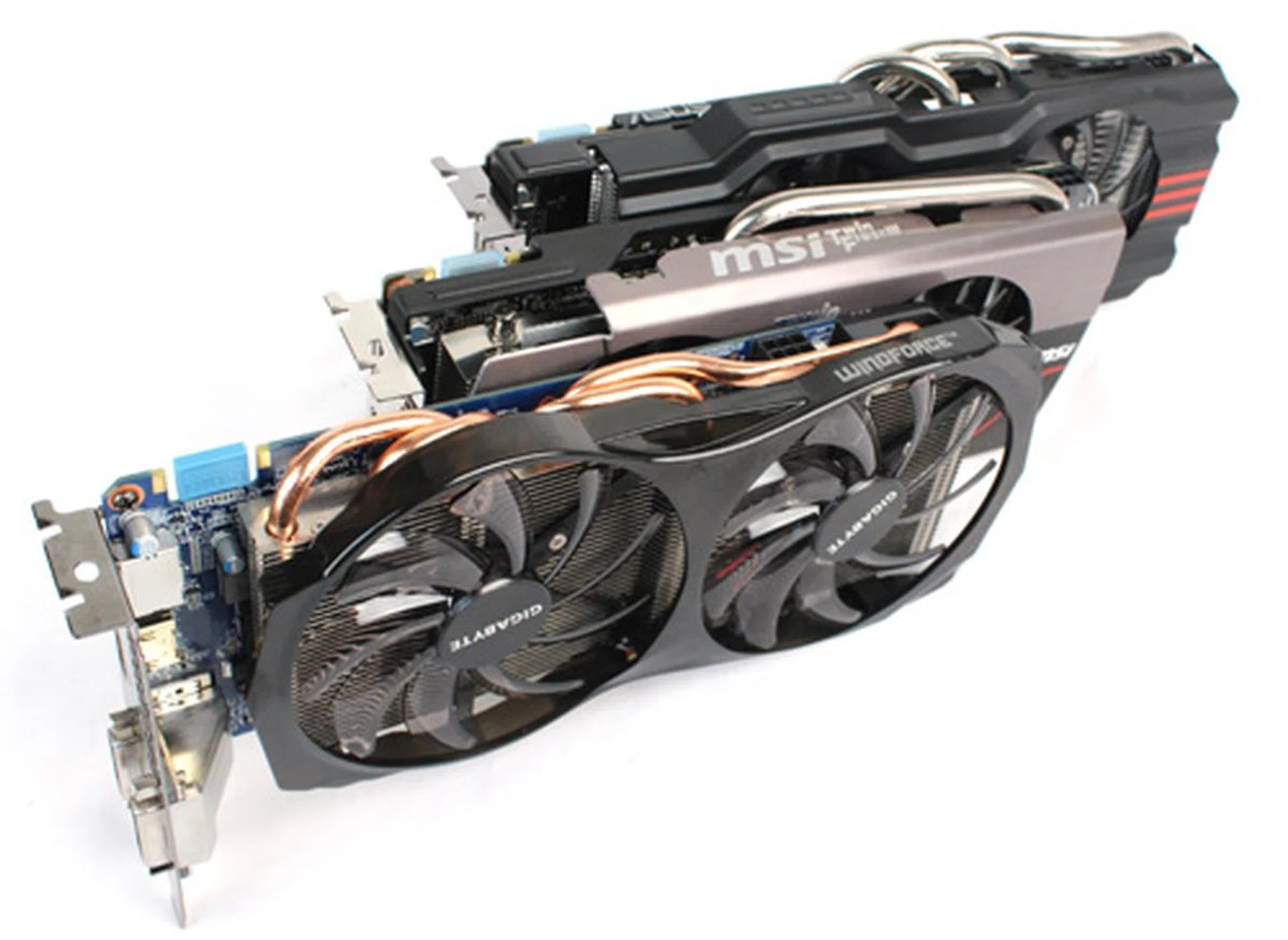 For the custom cards, ASUS was once again on top, but surprisingly MSI fell slightly behind at the 1920 x 1200 resolution, and scored almost exactly the same as Gigabyte at 2560 x 1600.