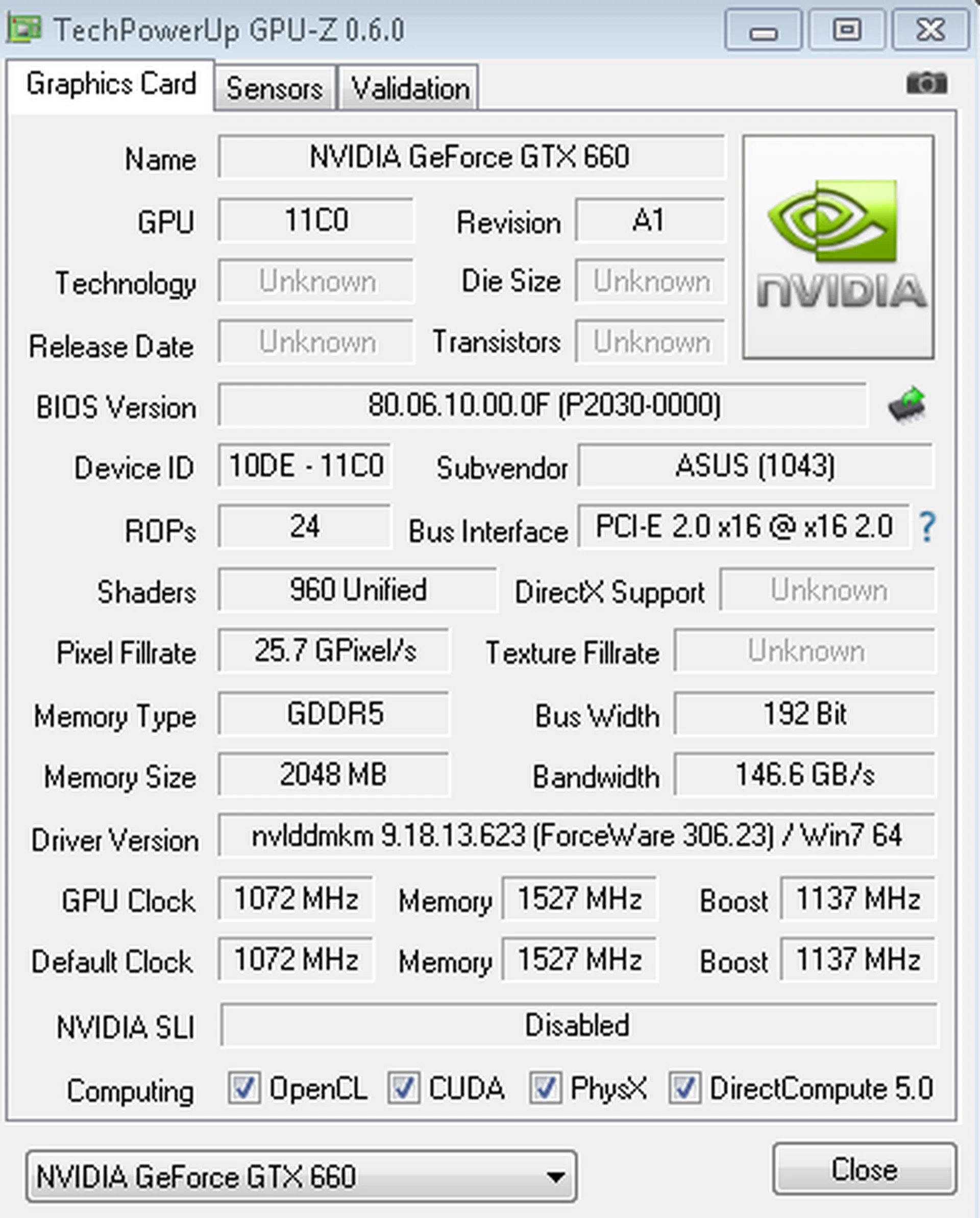 - ASUS GeForce GTX 660 DirectCU II TOP 2GB GDDR5 (ForceWare 306.23)