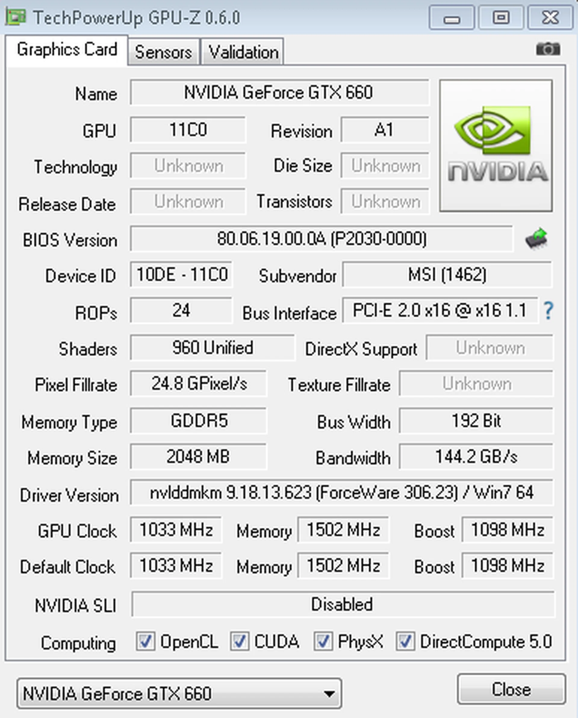 - MSI GeForce GTX 660 Twin Frozr III OC 2GB GDDR5 (ForceWare 306.23)