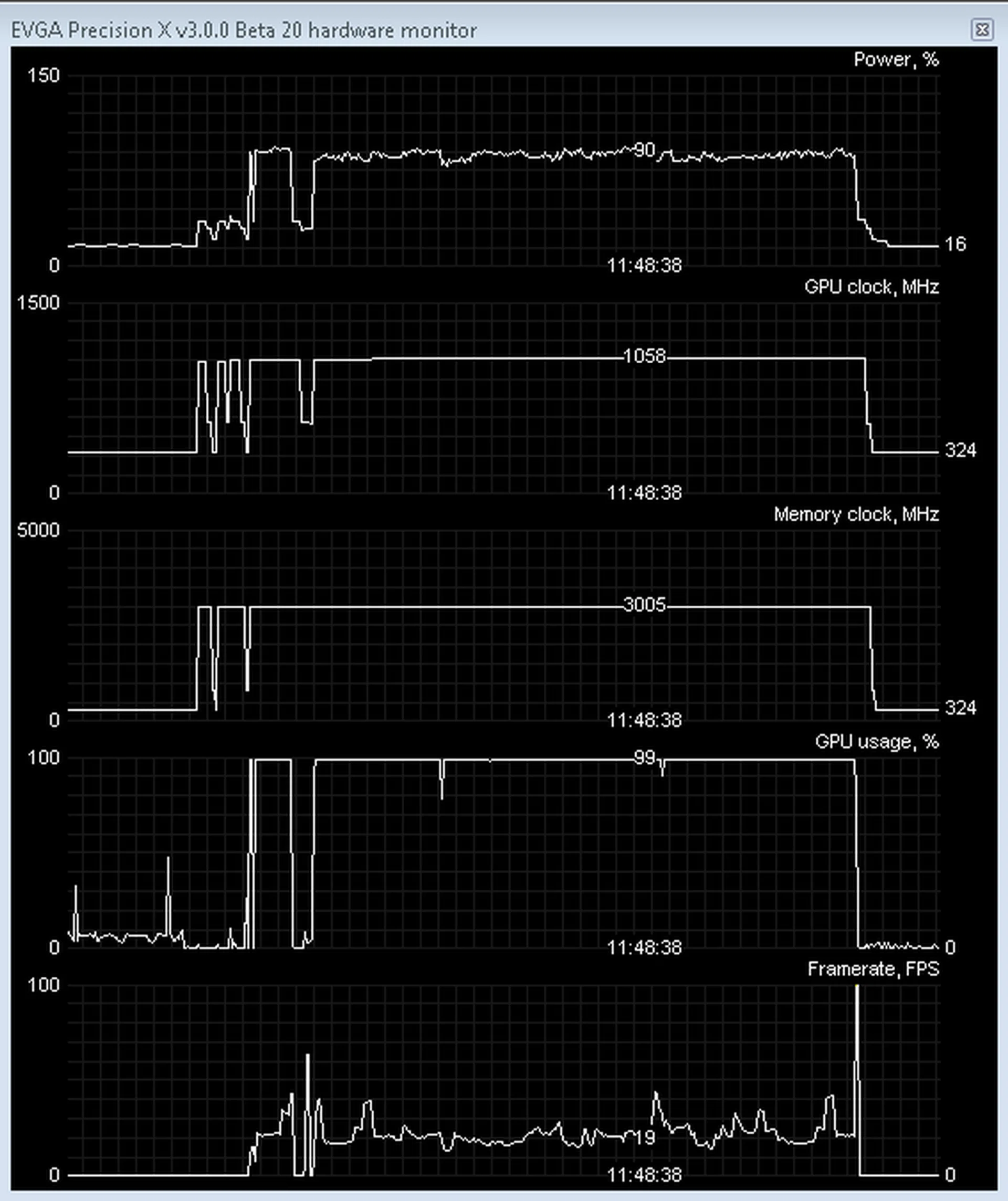 If we take a look at GPU Boost performance, we can see that the reference GTX 660 Ti was able to achieve a maximum boosted clockspeed of 1058MHz, an impressive 15.6% better than the default clock speed, which explains its solid performance.