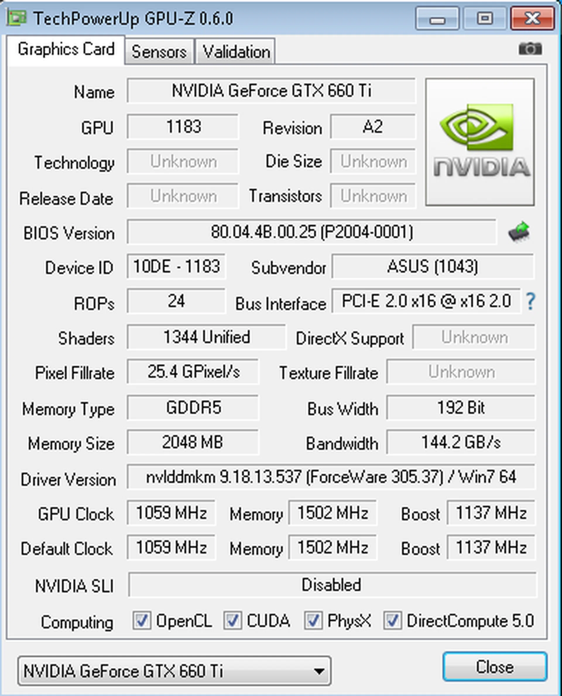 - ASUS GeForce GTX 660 Ti DirectCU II TOP 2GB GDDR5 (ForceWare 305.37)