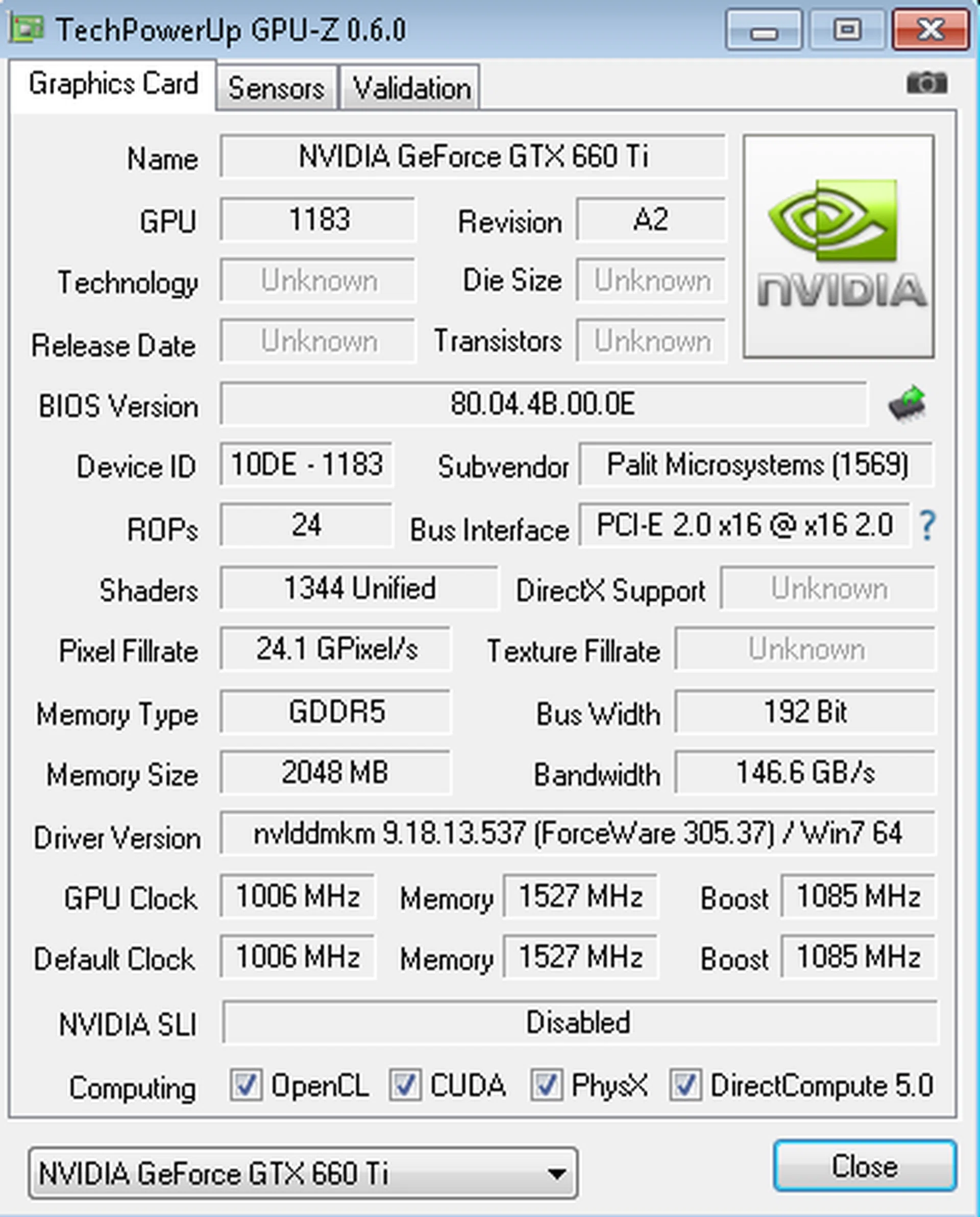 - Palit GeForce GTX 660 Ti JetStream 2GB GDDR5 (ForceWare 305.37)