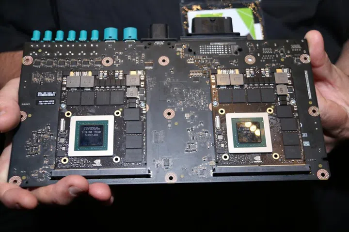 The Tegra Drive PX2 is powered by two next-generation Tegra processors (as shown in the previous photo) and two Pascal-based GPUs (as shown here), NVIDIA’s next-generation GPU architecture.