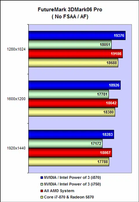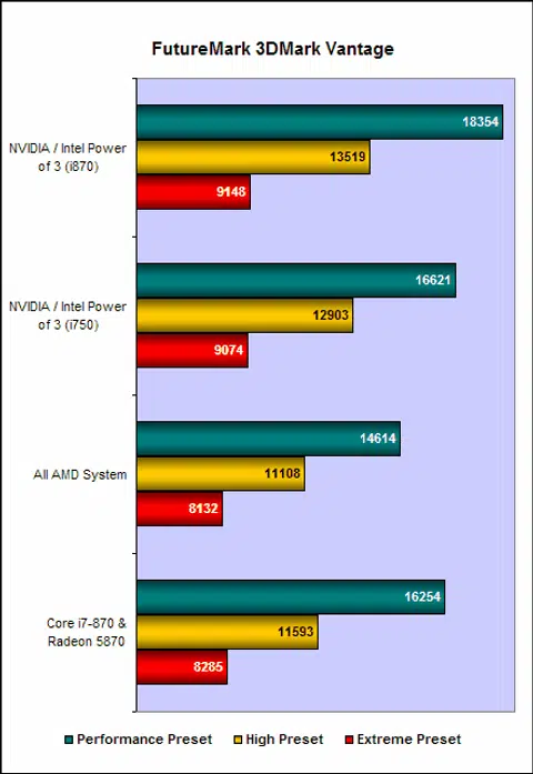 To evaluate NVIDIA's Power of 3 platform, we've put together the best NVIDIA/Intel system and the best all AMD system available now. To further spice things up, we've also included a test bed which swaps the Lynnfield Core i7-870 processor for a less powerful Core i5-750 processor, and also another which swaps the GeForce GTX 295 for the Radeon HD 5870.