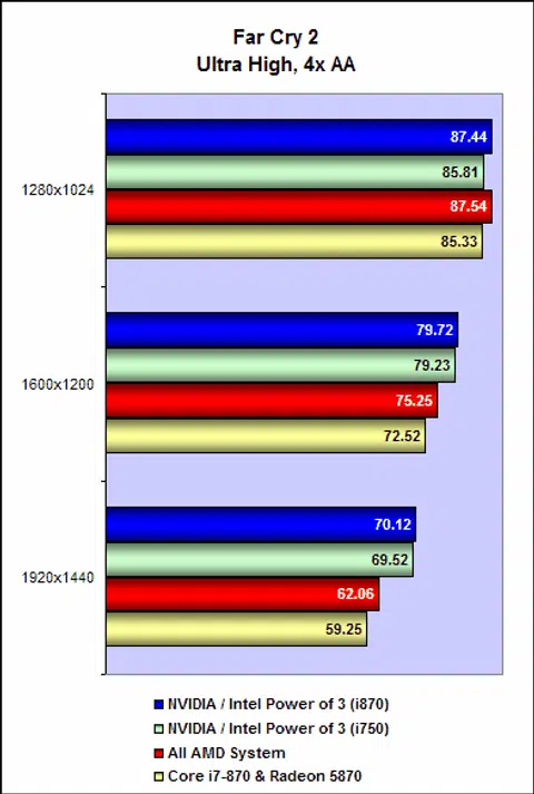 As it stands, the three setups that we have are quite even matched. If absolute performance is your concern, then the NVIDIA/Intel Power of Three system powered by the i7-870 processor is the one to go for. Compared with the all AMD system, it is notably quicker for most games.