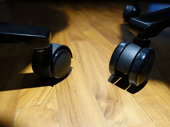 The Omega 2020 (pictured on the right) also sports improved casters - they glide smoother than the Omega 2018, pictured on the left here, have an increased sturdiness and durability. The PU rubber coating is also friendlier to my parquet flooring.