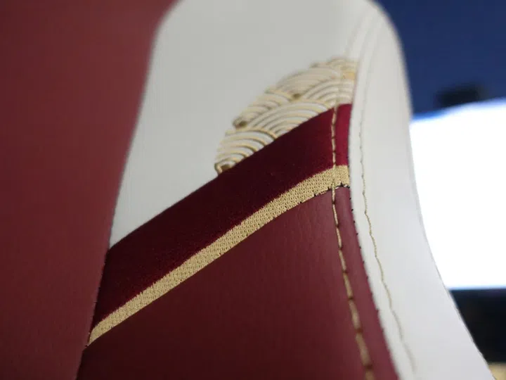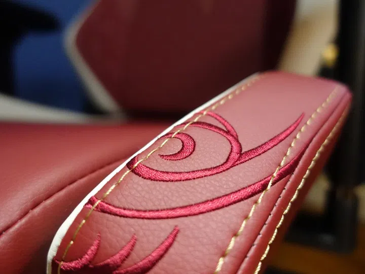 The stitching is top notch. I haven't seen in person the rest of the Champions chairs, but I think Yasuo's version is the next best-looking one for its intricacated embroidery.