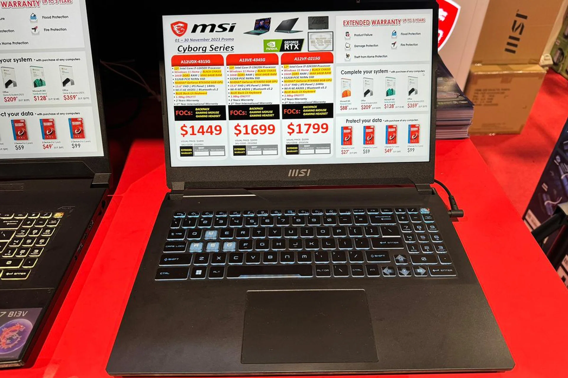 The MSI Cyborg comes in three different variants at the Tech Show, but it's the A12VF model that I thought is the best value for money at $1,799. The GPU is the only difference across all models, and the A12VF's NVIDIA GeForce RTX 4060 8GB Laptop GPU will offer more processing power for games and power efficiency to save on your utility bills.