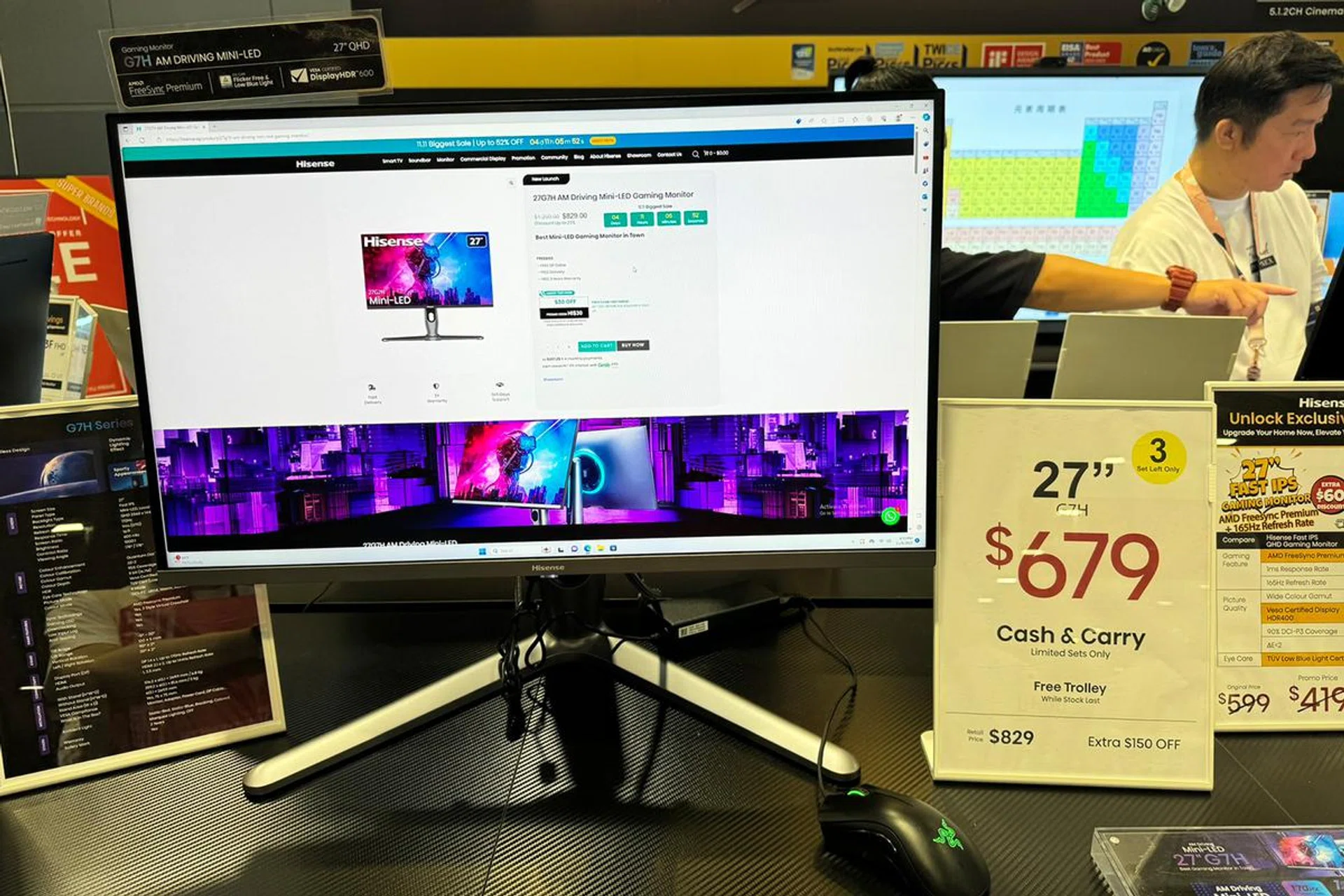 Oddly enough, I didn't see many gaming monitors going on sale at this year's Tech Show but this HiSense 27-inch Mini-LED caught my eye not only for its "eye-rubbing" price tag of $679, which I thought is a pretty good deal for any 27-inch Mini-LED gaming monitors. Mini-LED backlighting improves displays by delivering more contrast and adding brightness. This increased contrast usually means that a Mini-LED-backlit display can accept a high dynamic range (HDR) signal that will take advantage of this capability.