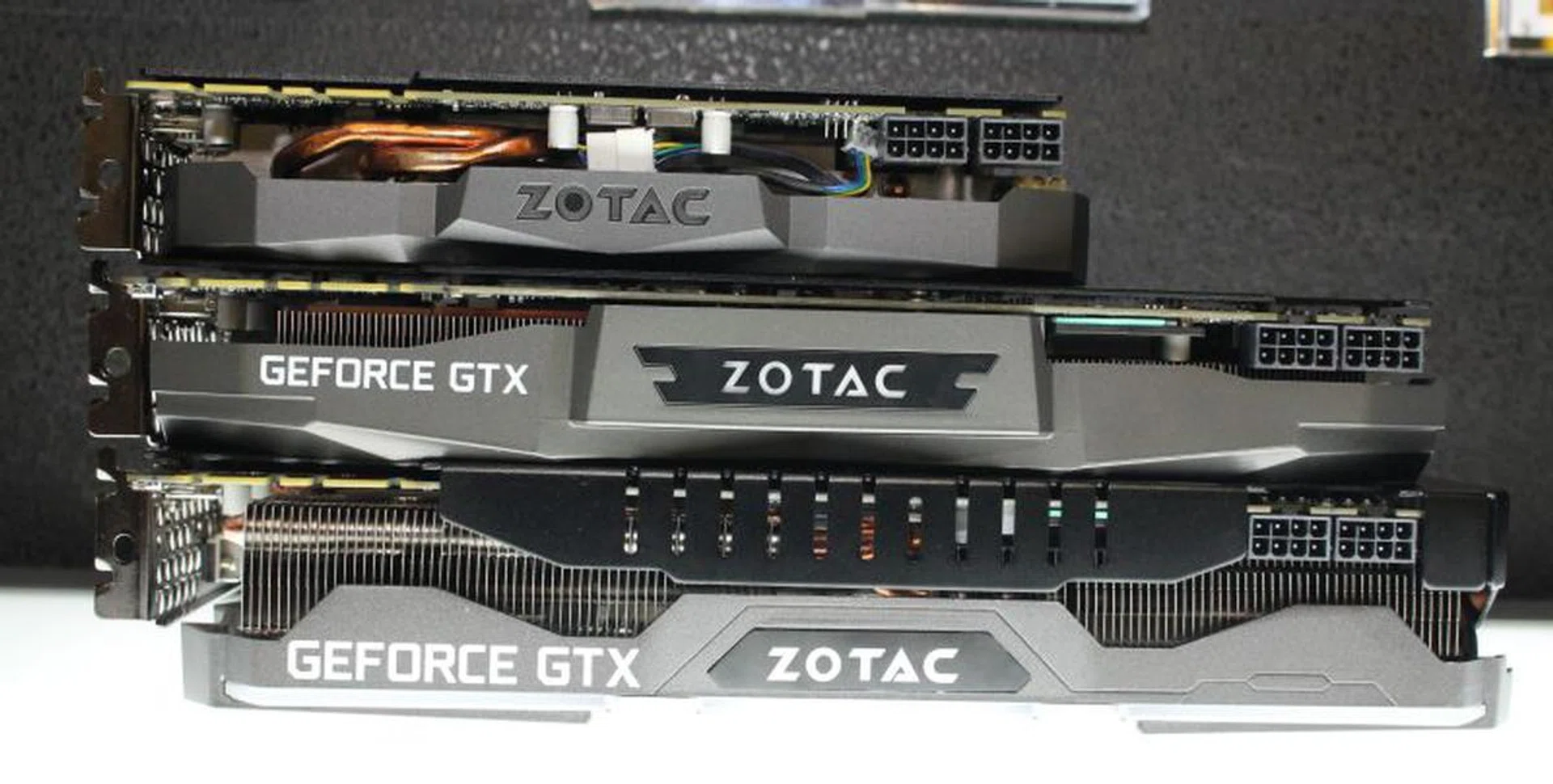 From L-R: The Zotac GeForce GTX 1080 Ti AMP! Extreme Edition, the GeForce GTX 1080 Ti AMP!, and the GeForce GTX 1080 Ti Mini.