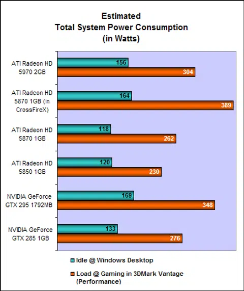 Power efficiency is one of the bright points of ATI's latest generation cards and the Radeon HD 5970 does not disappoint. Overall, power consumption figures are impressive for a card this powerful. It outperforms the GeForce GTX 295, yet consumes significantly less power than it. Such claims were barely thinkable in the previous generation ATI cards, but they've finally showed themselves as capable.