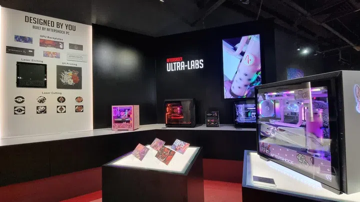 Besides their already impressive PC range, Aftershock is introducing Ultra-Labs to Singapore, which is a hyper-customisation service which basically allows you to design your entire PC as you would like it, from UV printing to laser cutting. Your imagination (and wallet) is literally the limit here, as evident by the ridiculous Haunted House Lego case build on display.