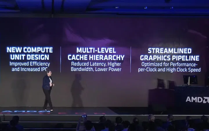 For years, we've been hearing about the codename Navi, but other than using a 7nm process technology, we've little information on what to expect. At Computex 2019, AMD revealed a little more on what to expect from the next generation gaming architecture. Designed with a new compute unit (CU) design to increase performance per clock up to 1.25x and equipped with multi-level cache hierarchy and a more streamlines graphics pipeline. Factoring the improved architecture and process technology advances (it will be using a 7nm process technology), AMD estimates that RDNA based graphics cards can garner up to 1.5x in performance-per-watt compared to older architectures.