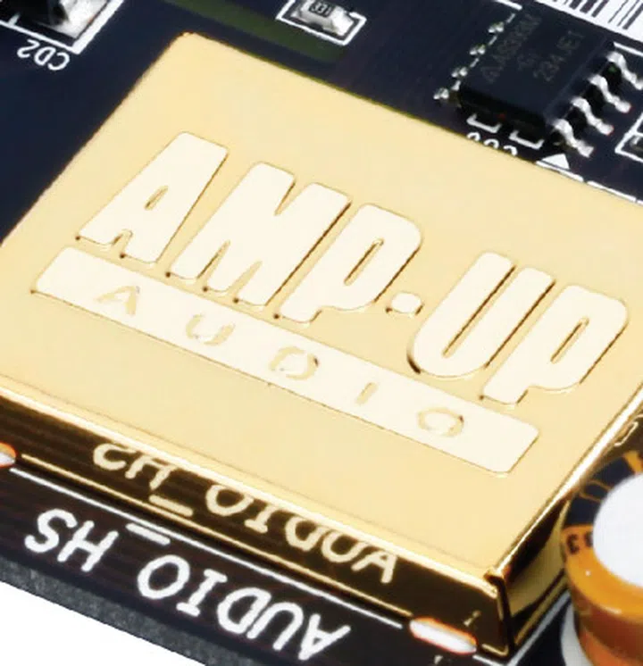 With a gold-plated USB 2.0 port, the USB DAC-UP provides clean power delivery to any Digital-to-Analog Converter (DAC), which can be sensitive to fluctuations in power from other USB ports. Also, to optimize the audio experience, the gaming motherboards offer Gain Boost with on-board switches to select between 2.5x and 6x amplification modes depending in output device. Most OP-Amps are capable of providing a high-gain audio output that is ideal for high-end headphones and speakers that have higher impedance headroom.